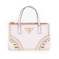 Description: White Prada Mini Studded Tote Bag