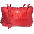 This is a fabulous and beautiful Prada handbag in real red! It is made of nylon fabric in a beautiful genuine red color. There are two longer leather straps and this is what is attached with a gold zipper with the lock and key accent. It has a red leather bottom that partially goes up the bottom of the handbag and leather foot accents! The interior is the signature, Prada logo fabric. It's a unique style that will always be on trend!