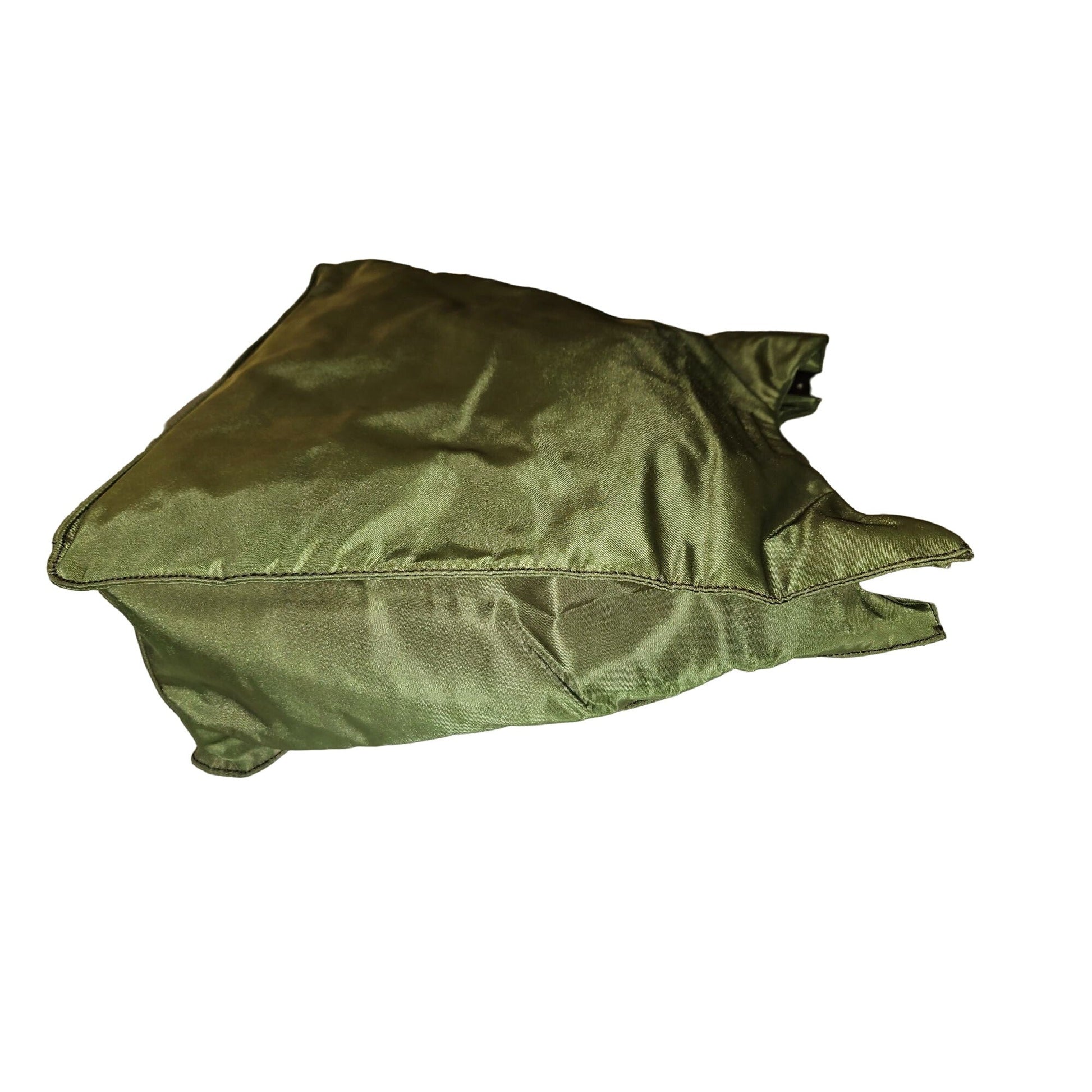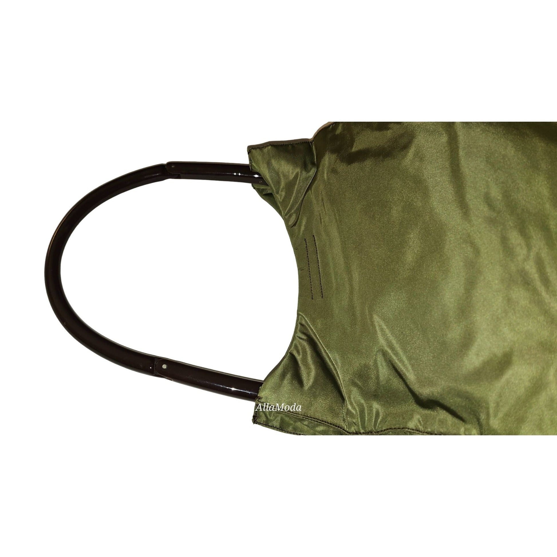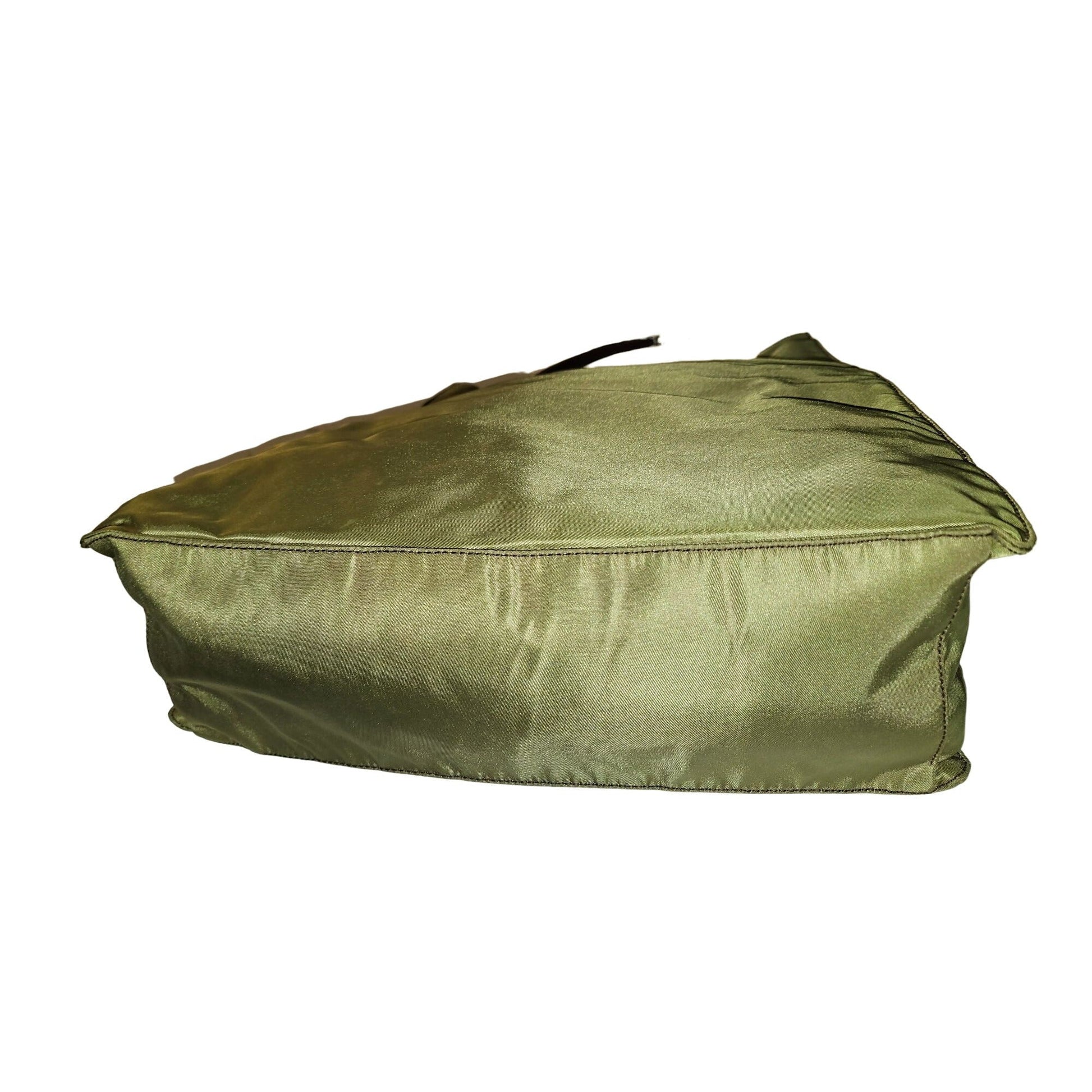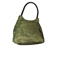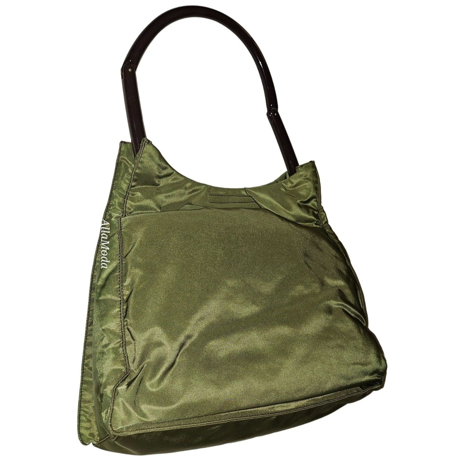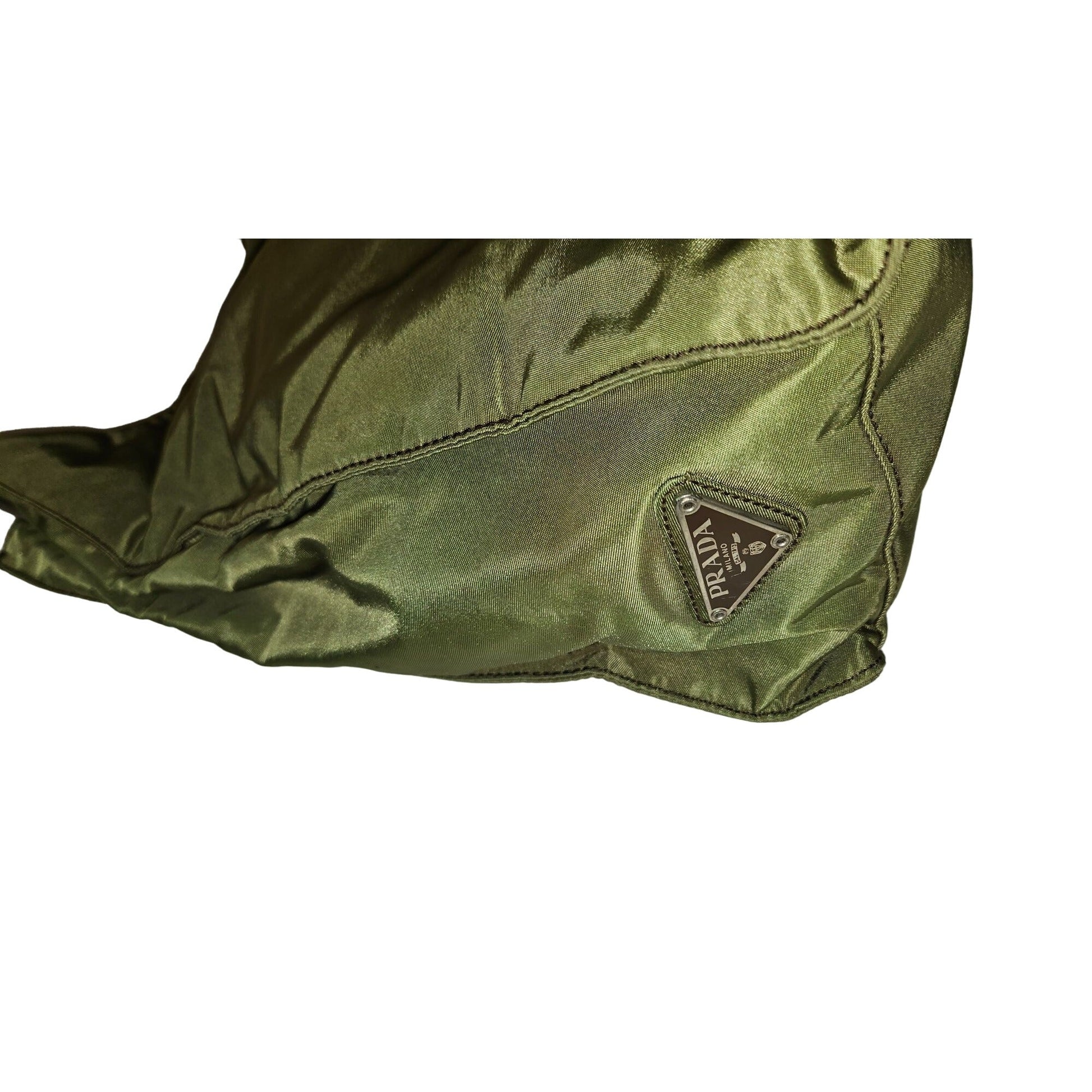 For sale is a Prada olive green nylon 1990's re-edition XL hobo with a Lucite handle & chrome hardware,