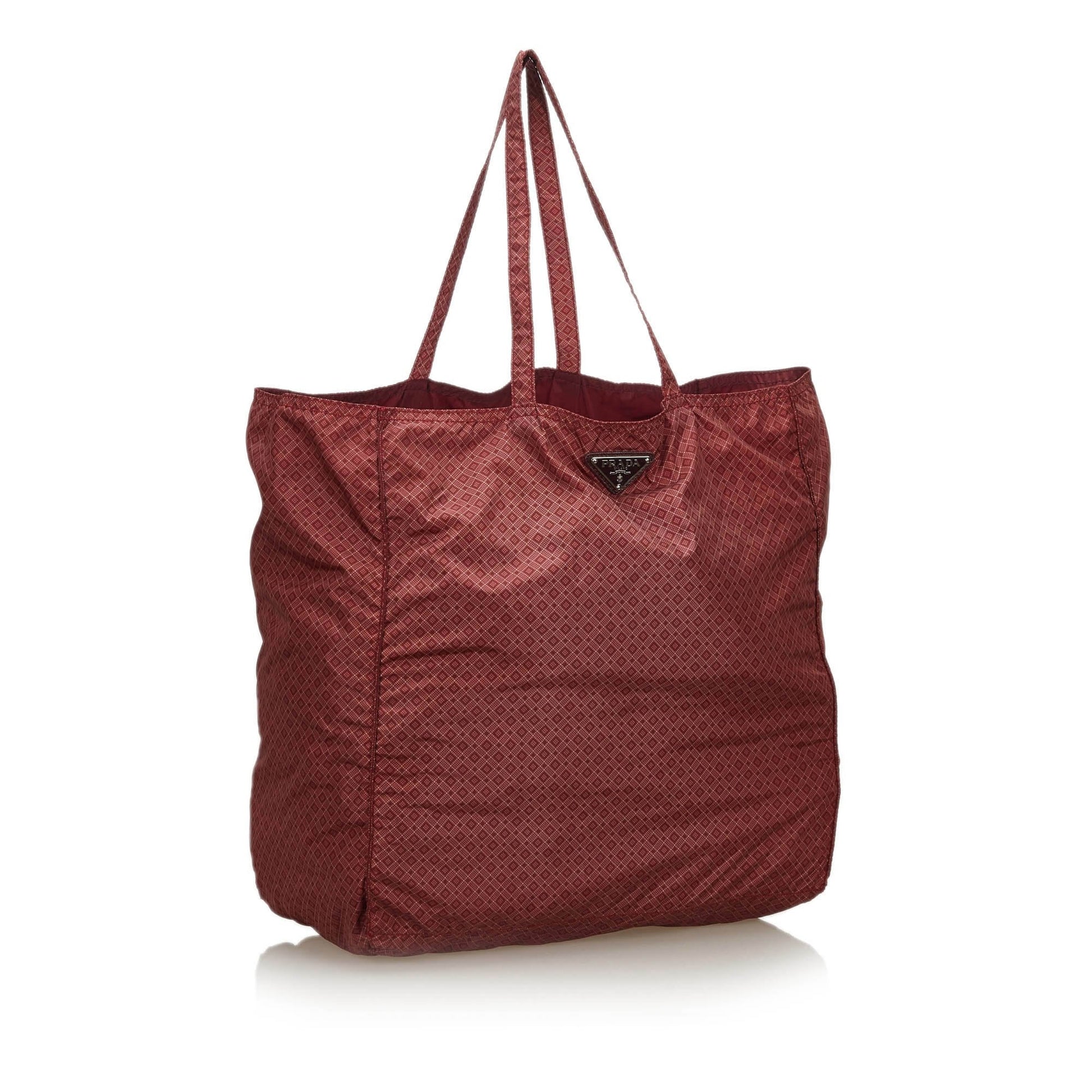Prada Red Nylon Fabric Printed Tote Bag Italy