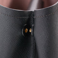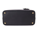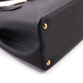 Details: Black Saffiano Cuir Leather / Gold-Tone Hardware / Dual Rolled Handles / Detachable Adjustable Shoulder Strap / Lily-Of-The-Valley White Nappa Leather Lining / Dual Compartments / Single Pocket With Magnetic Snap Closure / Metal Logo at Front Face / Snap Closure On Sides / Protective Studs at Base