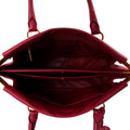 Details: Red Saffiano Leather / Gold-Tone Hardware / Dual Rolled Handles / Protective Feet at Base / Dual Compartment at Interior / Four Pockets at Interior, One with Zipper Closure / Push Lock Closure at Top