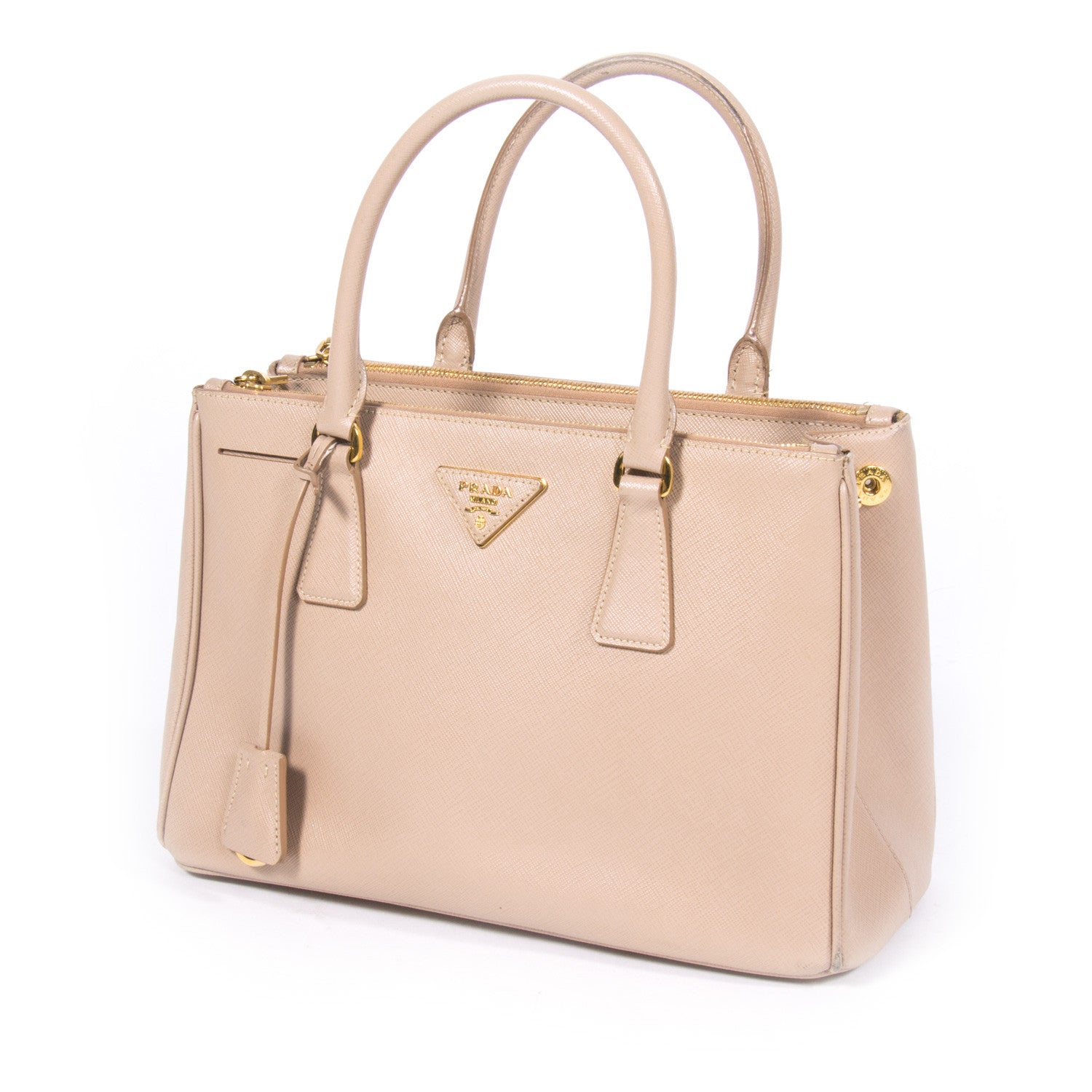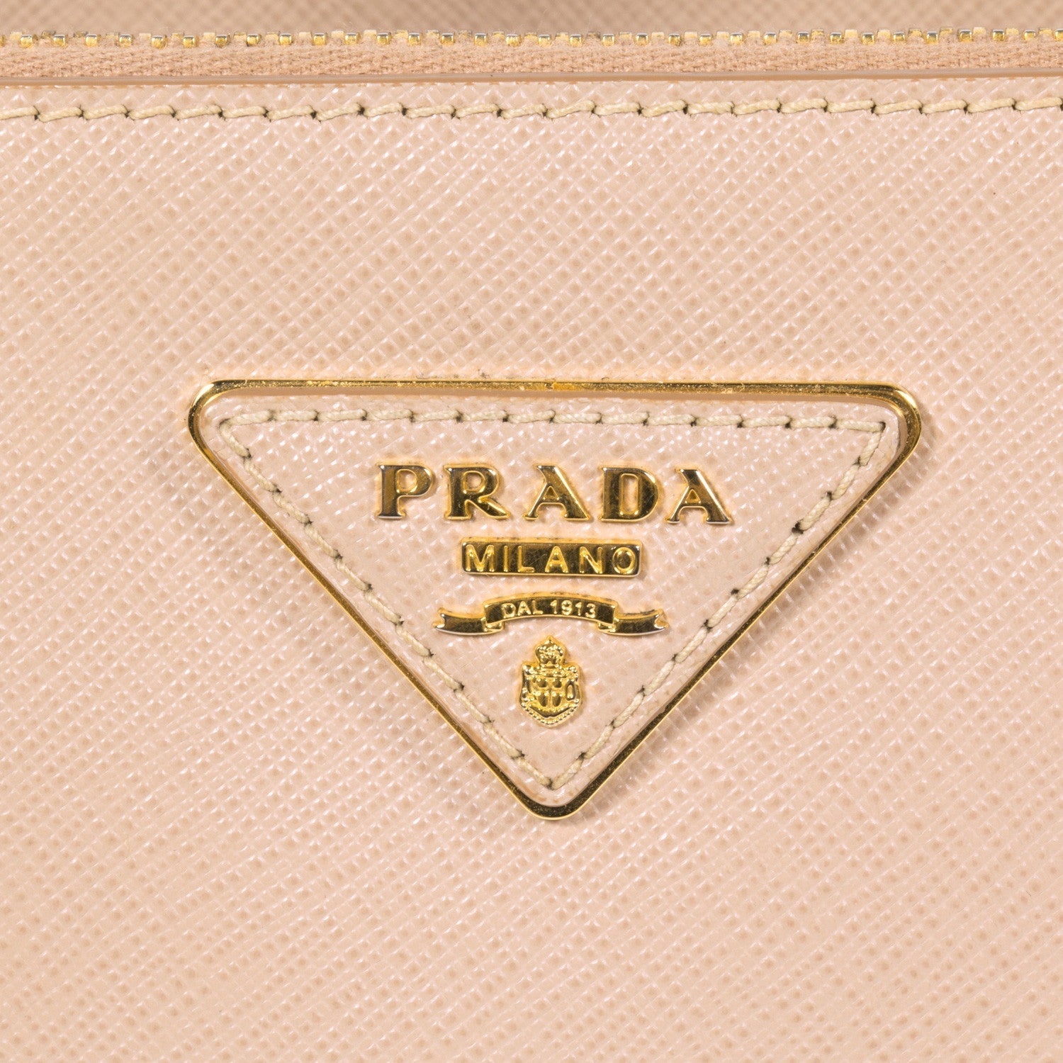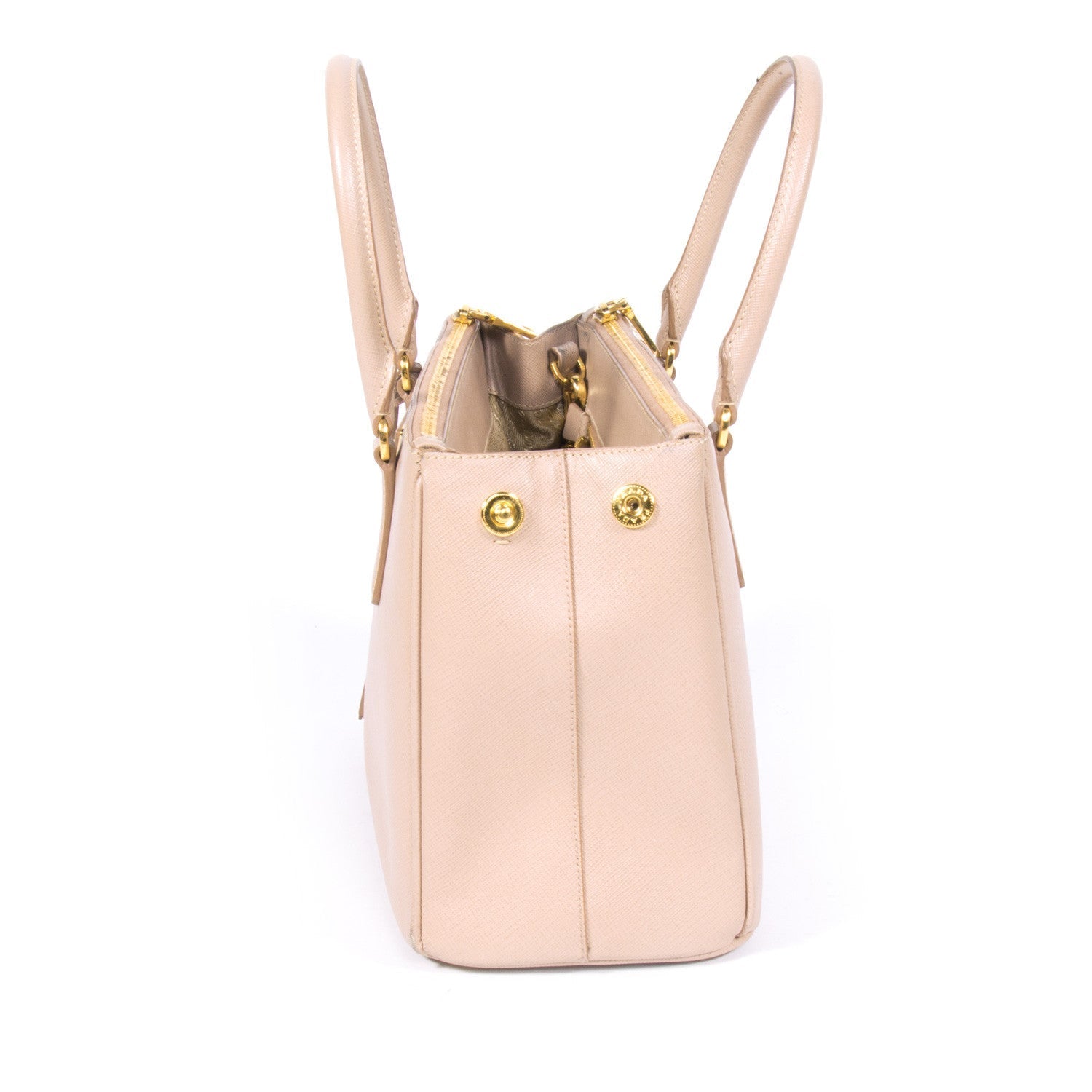 Description: Prada Saffiano Lux Double Zip Small In Tan Color