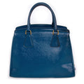 Details: Cobalt Blue Vernie Leather / Gole-Tone Hardware / Dual Rolled Handles / Tonal Stitching / Blue Jacquard Lining / Three Compartments, One With Zip Closure / Dual Flat Pockets, Dual Slit Pockets And Dual Zip Pockets At Interior Walls / Luggage Name Tag Attached