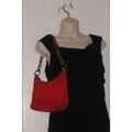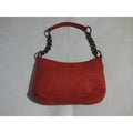 Prada Style Shoulder Purse Reddish Orange Suede And Leather With A Chrome Chain Strap Hobo Bag
