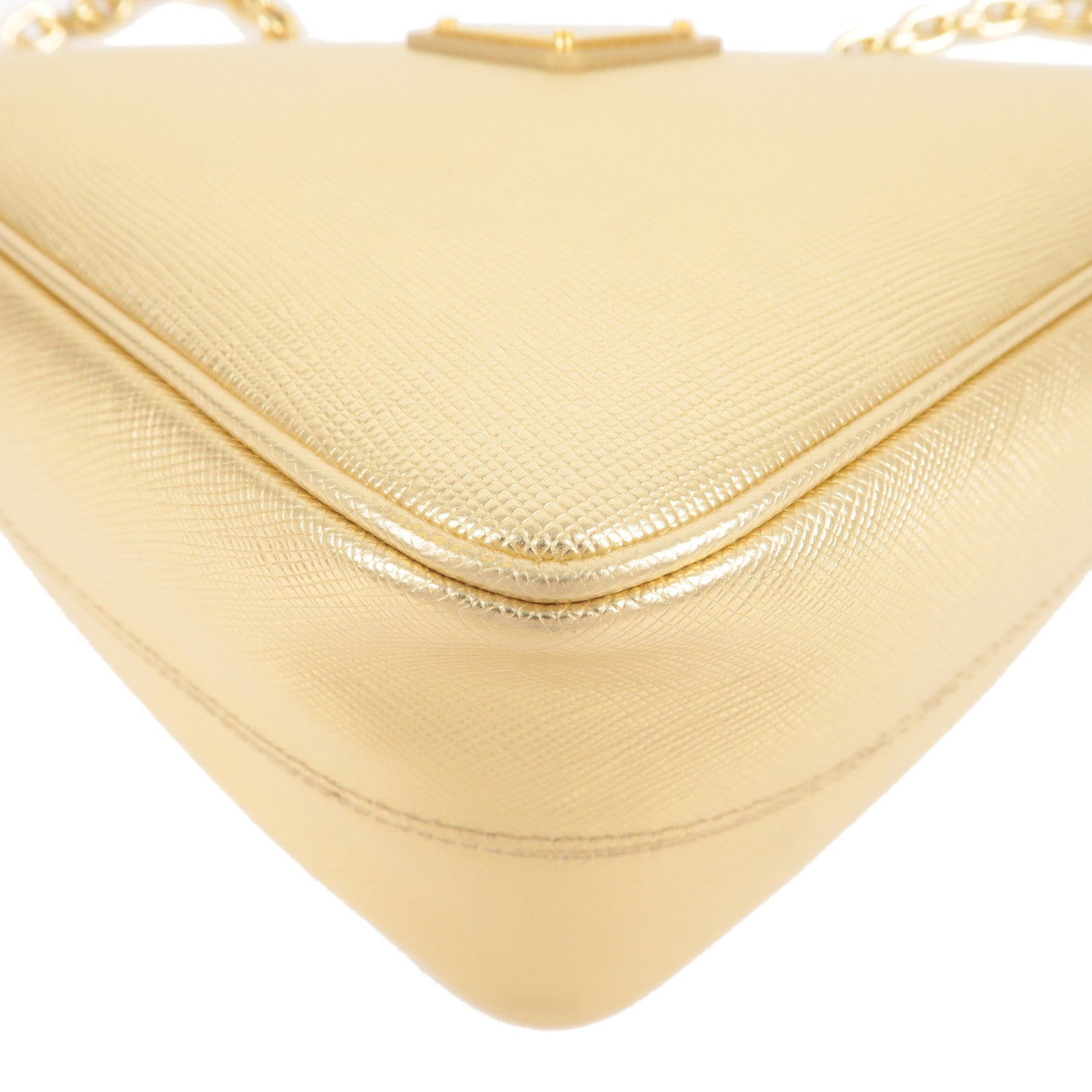PRADA Triangle Leather Chain Shoulder Bag Gold 1BH190