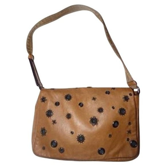 Prada Vintage 1990's Tan Leather and Suede Shoulder Bag with Rivet Design