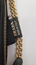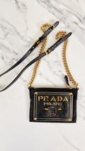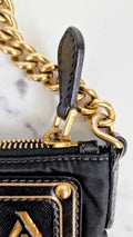 Rare Vintage Prada Black & Gold Tessuto Oro Nylon & Saffiano Leather Cut-Out Logo Crossbody Bag - Prada BT0606