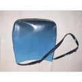 For sale is an authentic, Prada, patent leather in a gradation of shades of blue, single, multi-length strap, retro large size, gorgeous, open top tote/cross body! This is an unusual, great looking, classic, mod look purse with a lot of style!