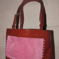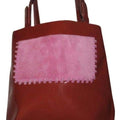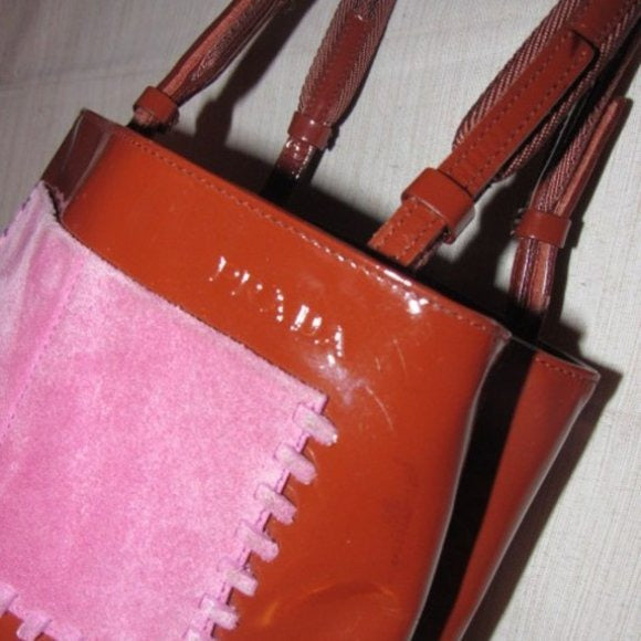 Prada Vintage Red Patent Leather And Pink Suede Petite Whipstitched Tote Bag