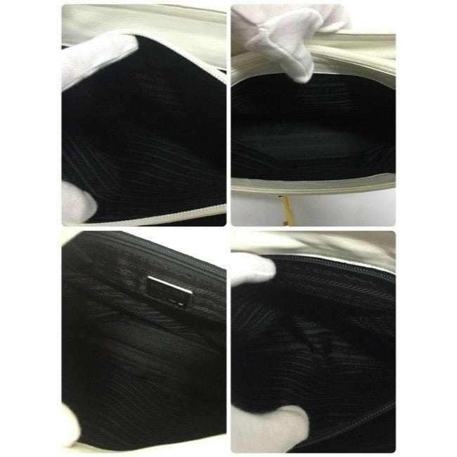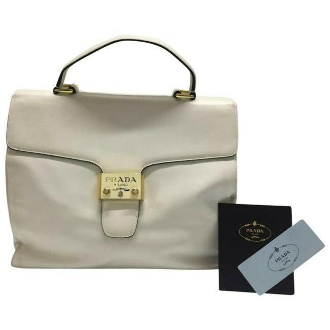 Prada Vitello Daino Handle Style Purse Super Soft White Leather Satchel