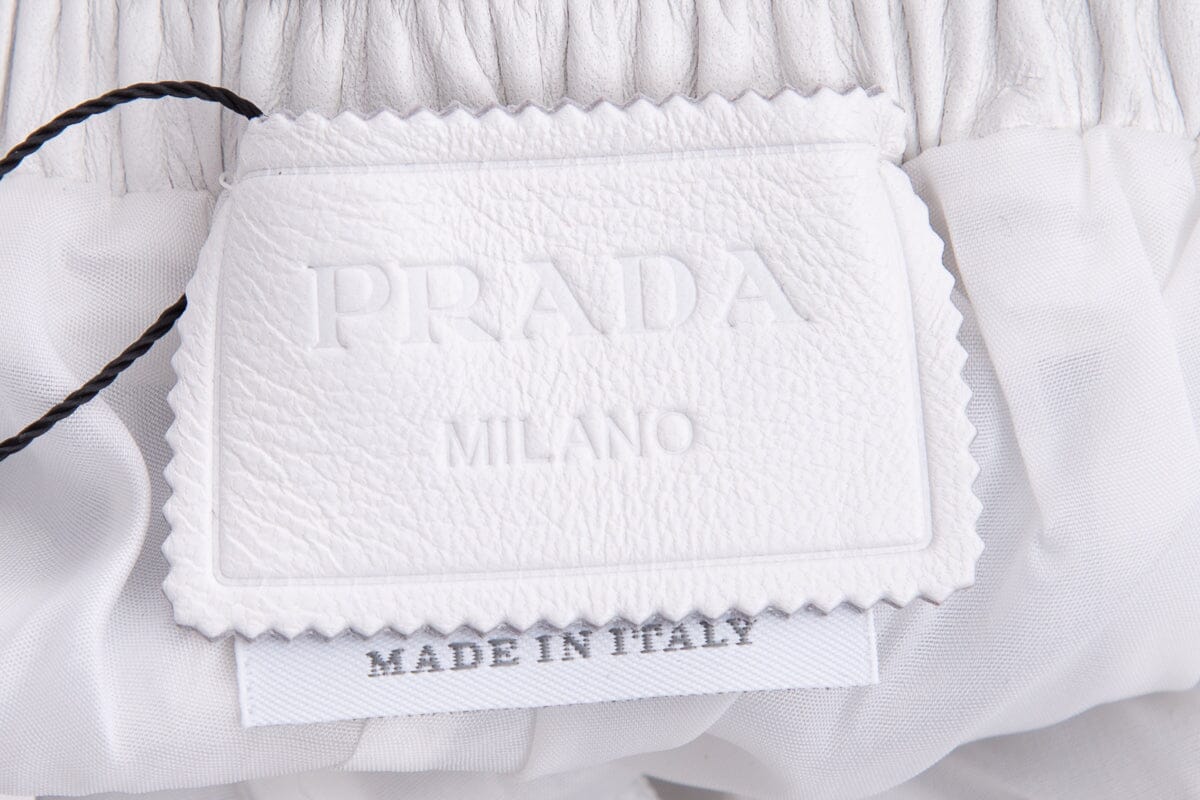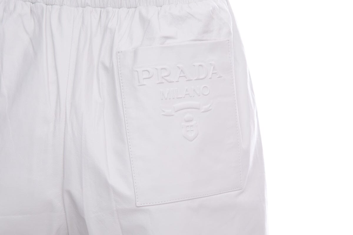 Prada White Leather Shorts with Elastic Waist Band with Logo Back Pocket. This item is in very good condition.