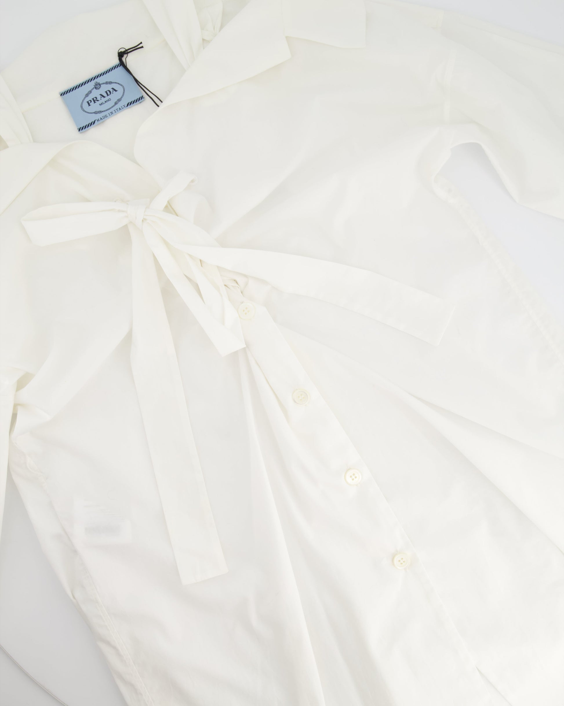 Prada White Poplin Button Down Shirt with Shoulder Strap Detail IT 40 (UK 8)