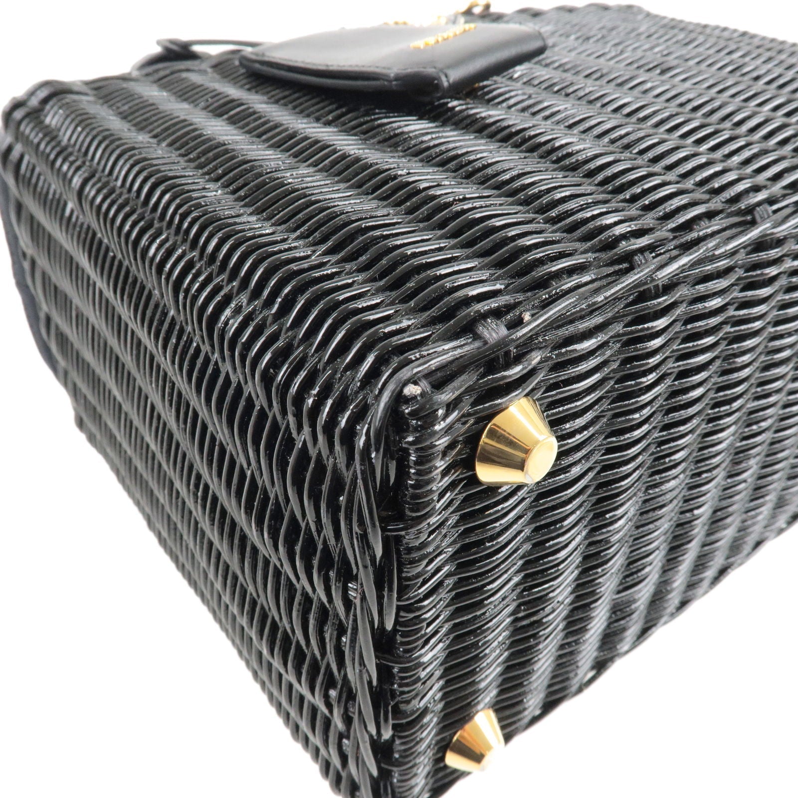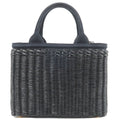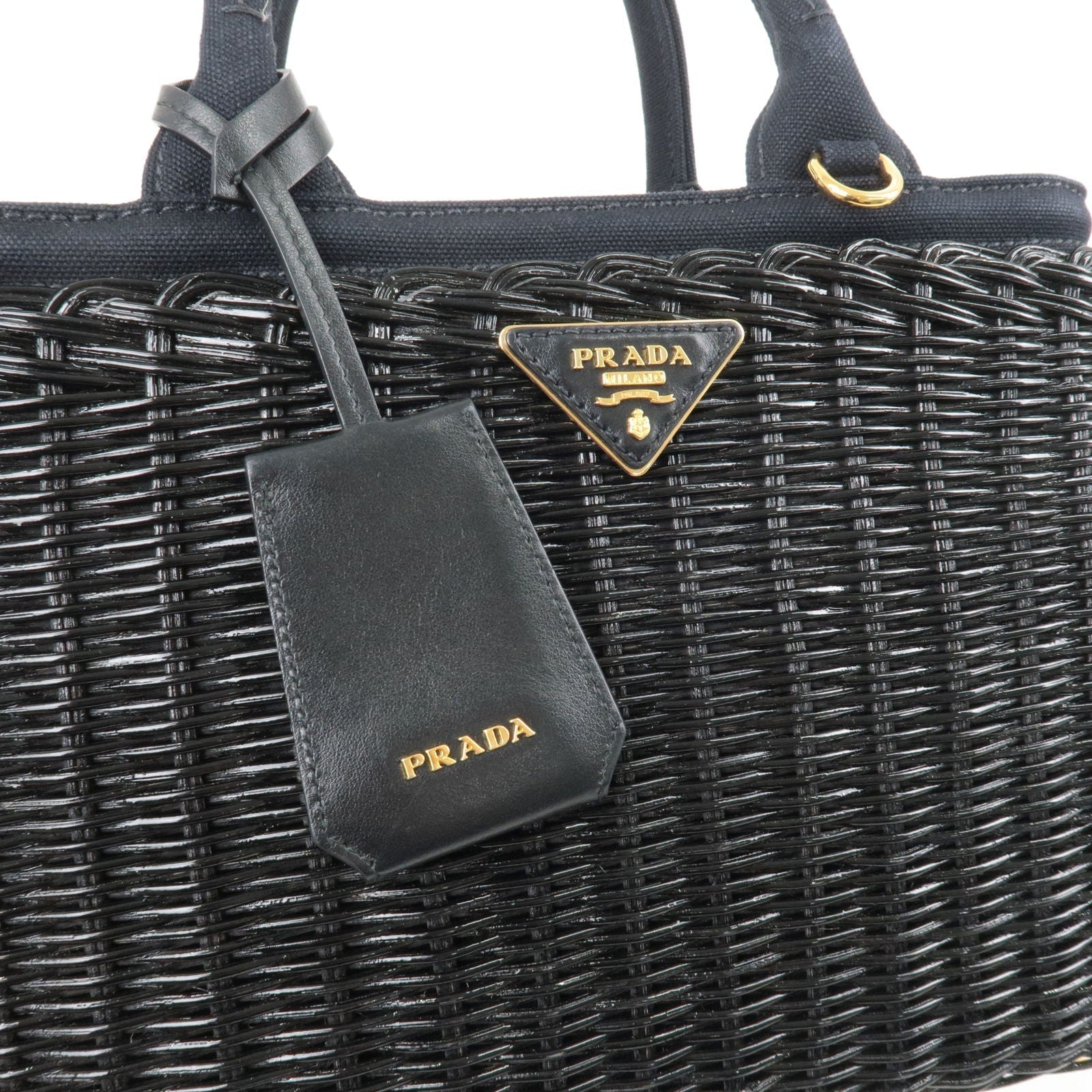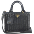 PRADA Wicker Canvas 2Way Basket Bag Hand Bag Black 1BG835