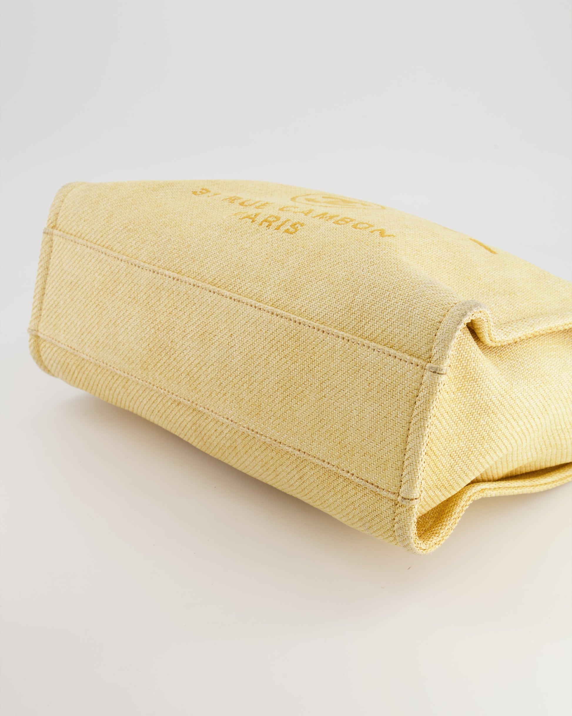 Chanel Yellow Raffia Small Deauville Tote Bag with Silver Hardware