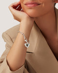 A joyful, inflated heart is suspended from a paperclip link chain bracelet. Finished in high-polish silver.