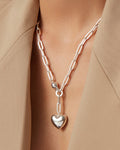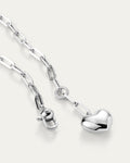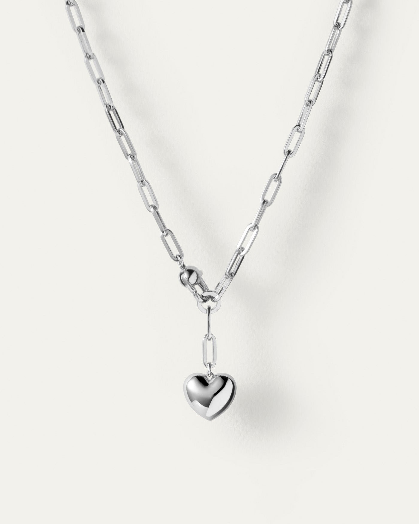 A joyful, inflated heart is suspended from a paperclip link chain necklace. Finished in high-polish silver.