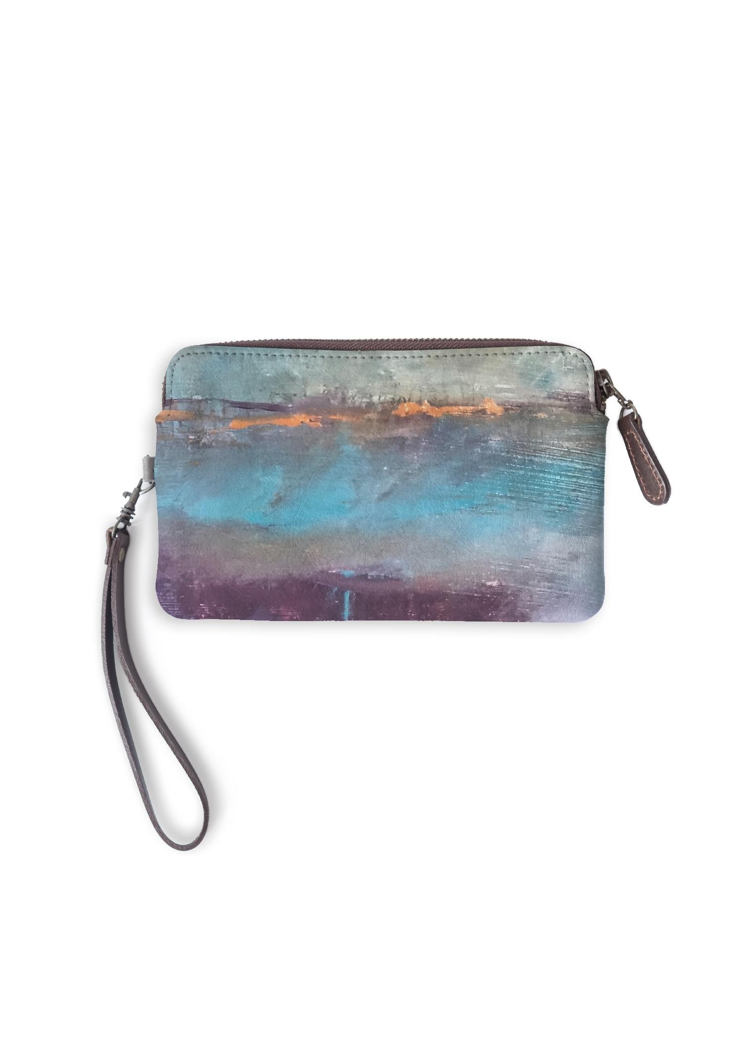 Whether carried as a clutch or dangled from the removable wristlet strap, this beautiful bag adds an elegant touch to any ensemble. Crafted from 100% genuine leather and premium metal accents and adorned with original artwork.