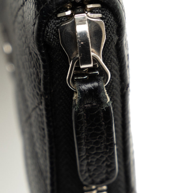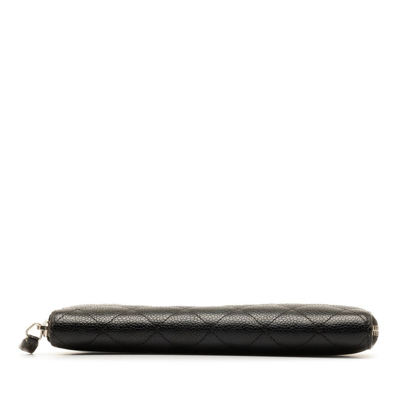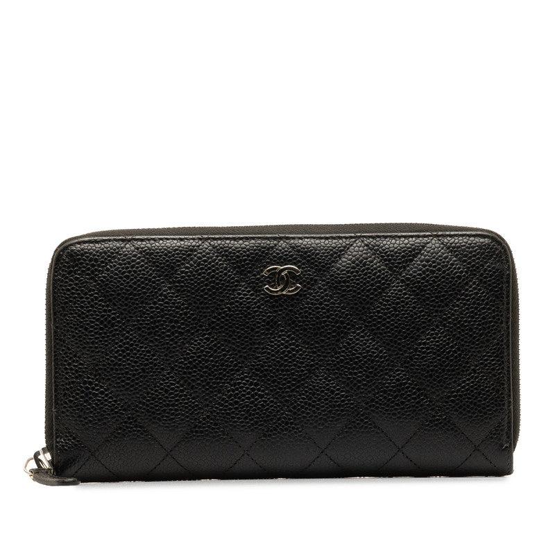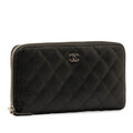 Chanel Quilted Caviar Zip Around Wallet Leather Long Wallet in Good condition