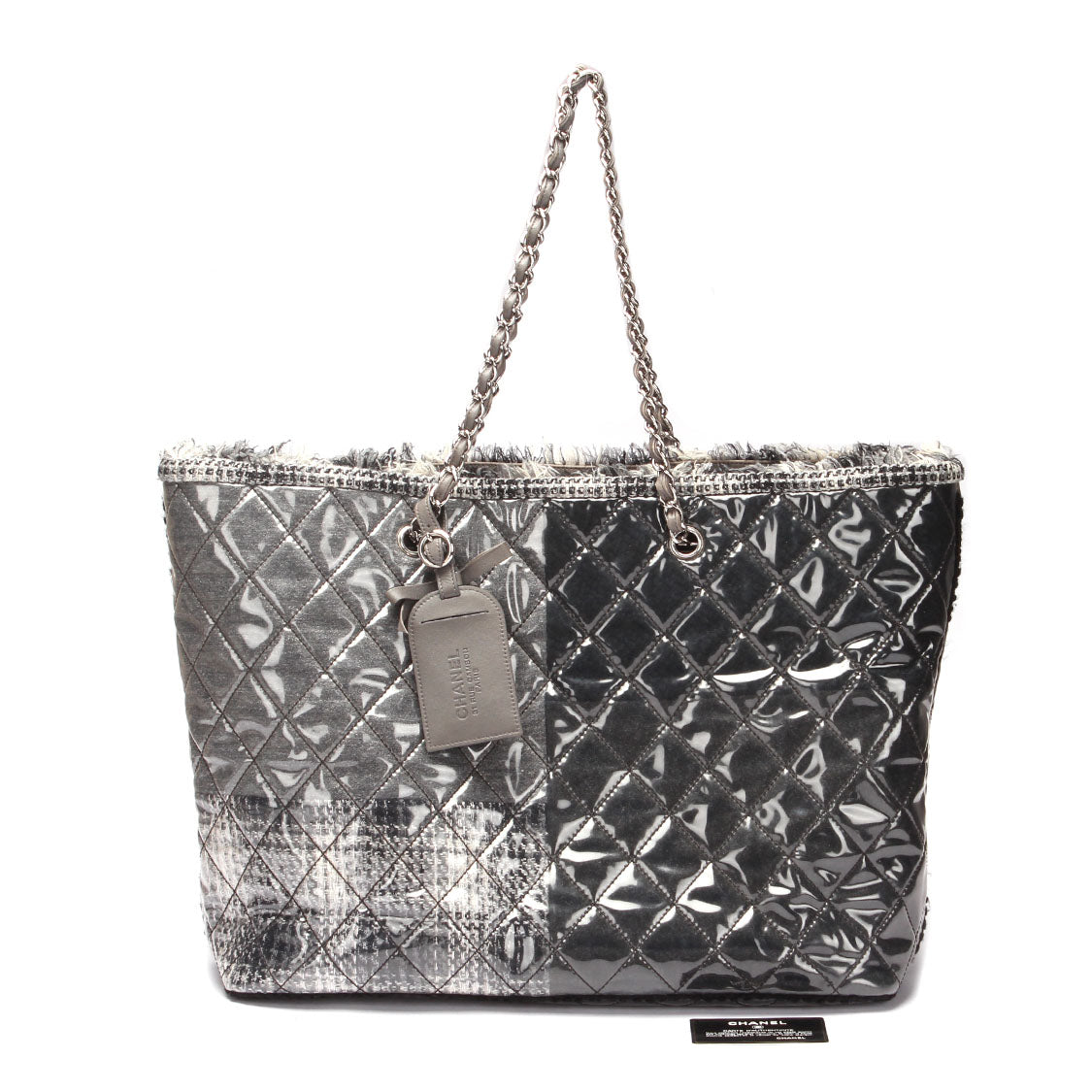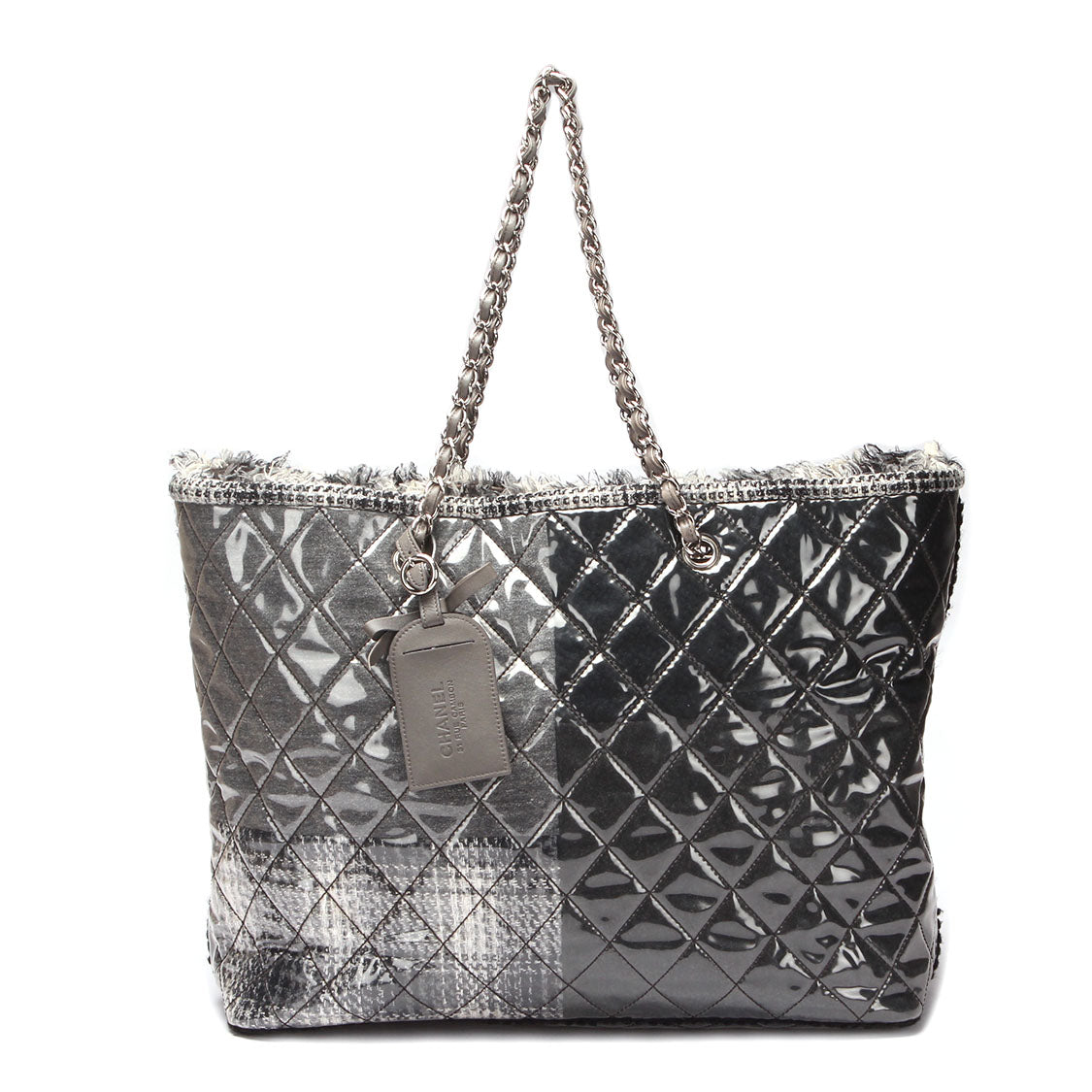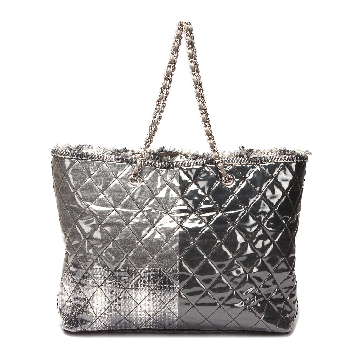 Chanel Quilted Funny Tweed Patchwork Tote Plastic Tote Bag in Excellent condition