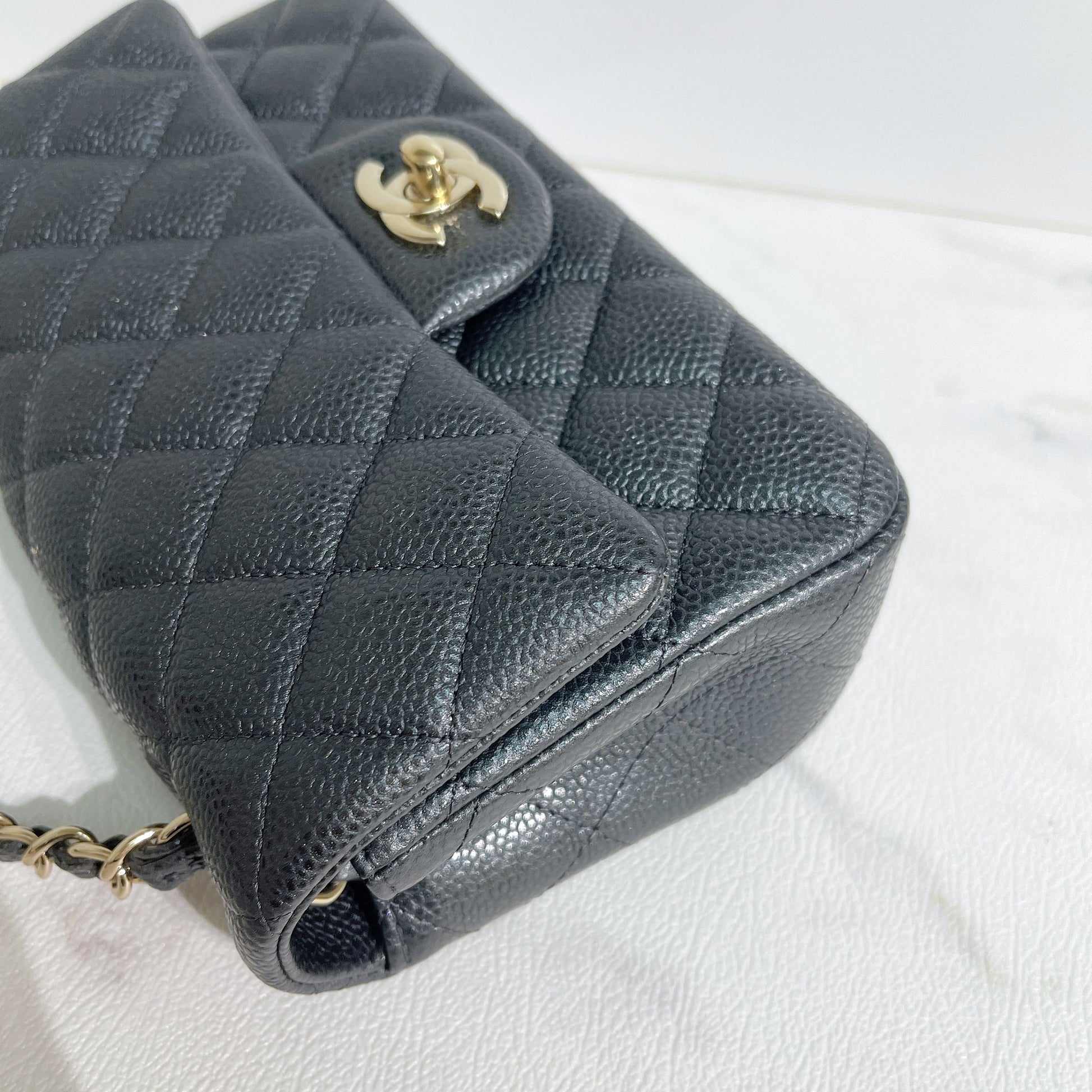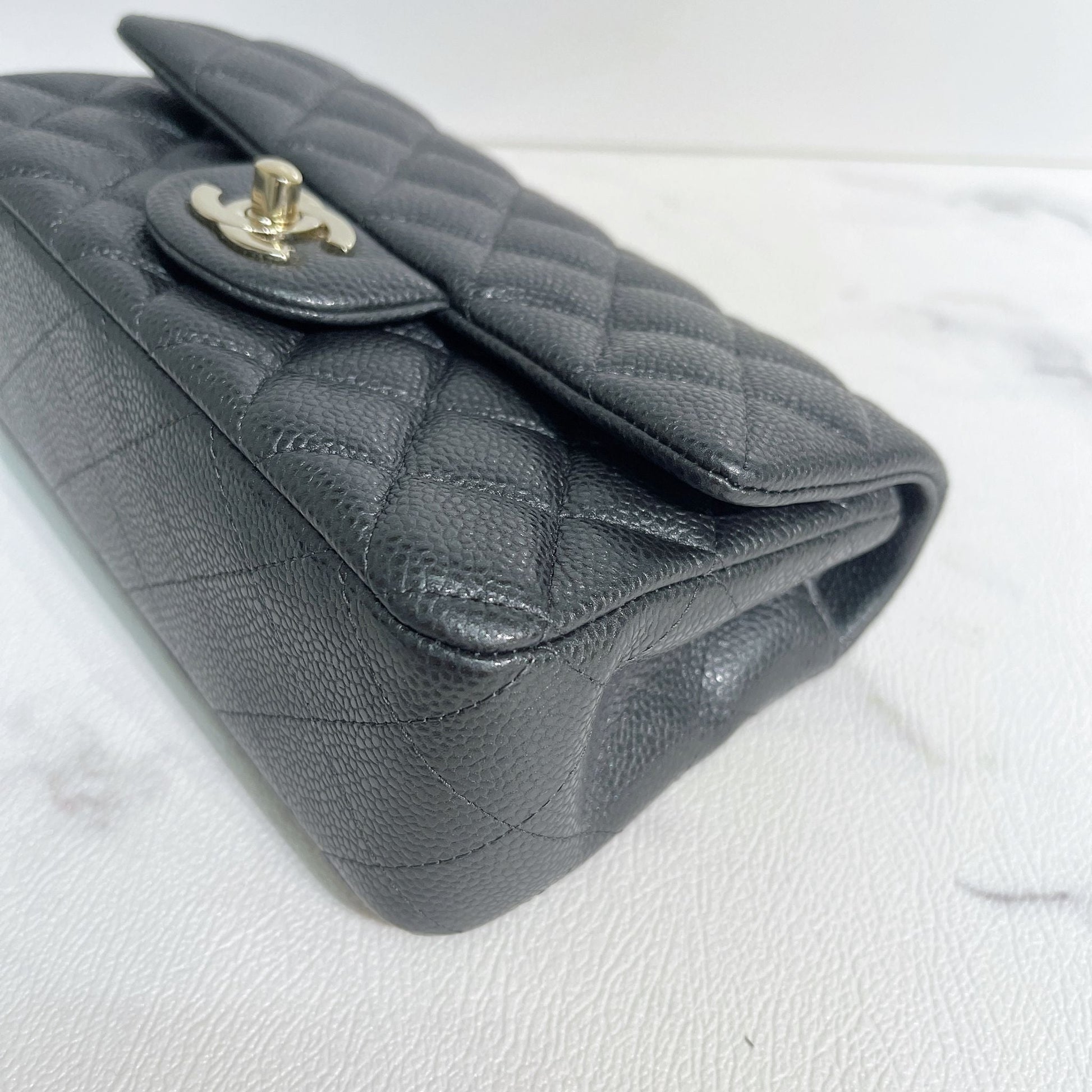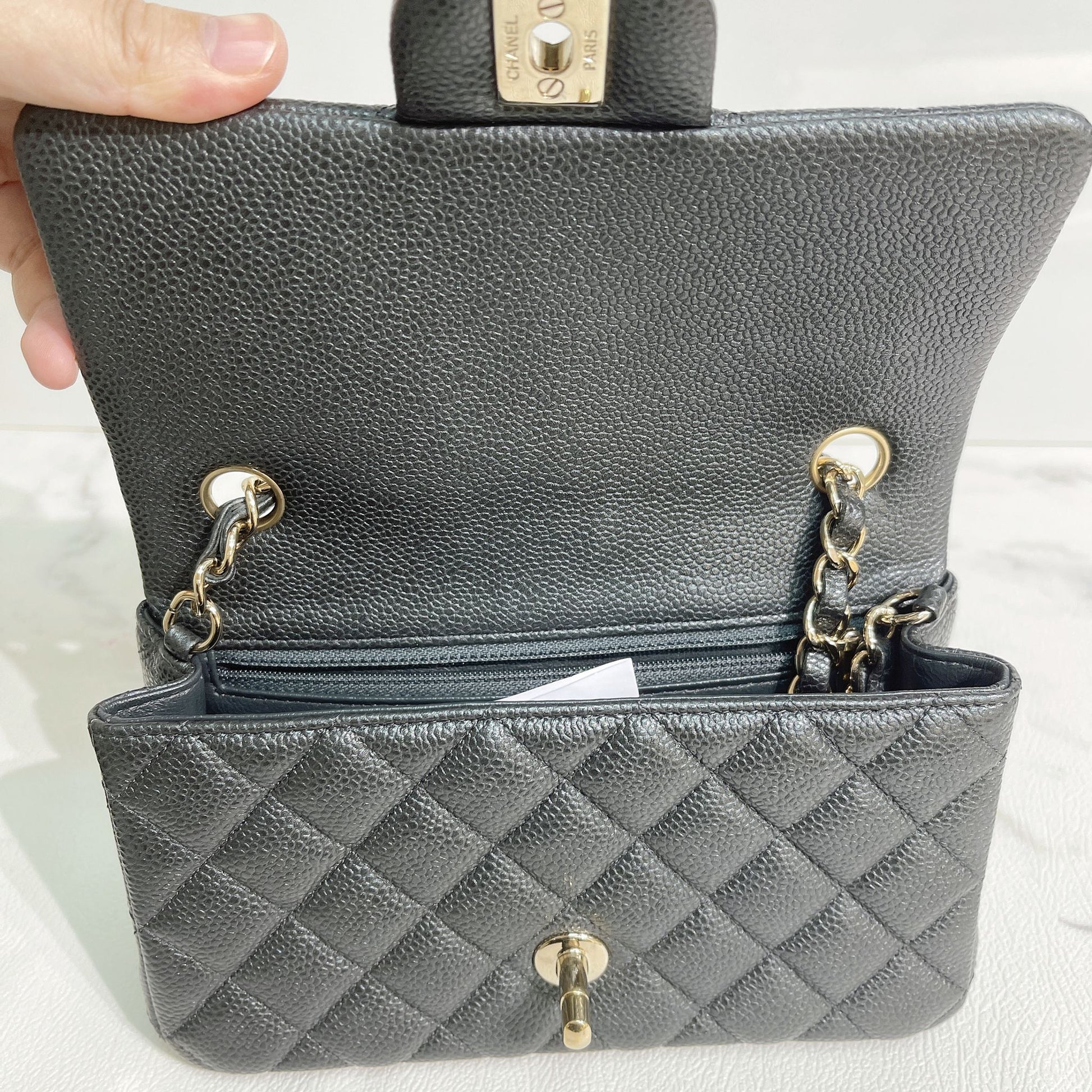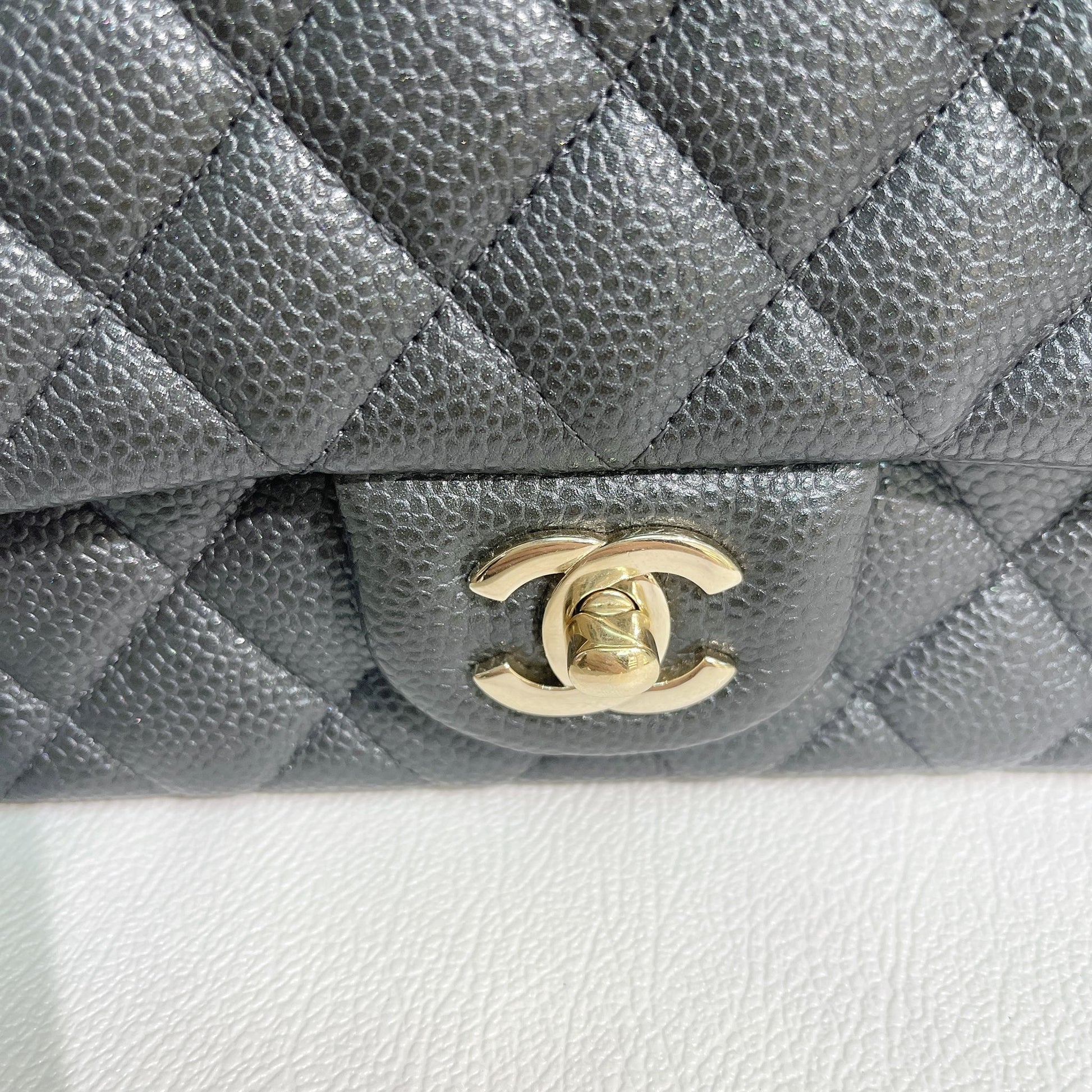 Chanel Quilted Mini Rectangular Flap Dark Grey Caviar Gold Hardware 18S
