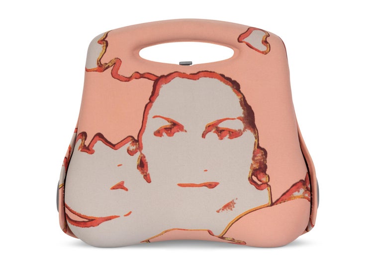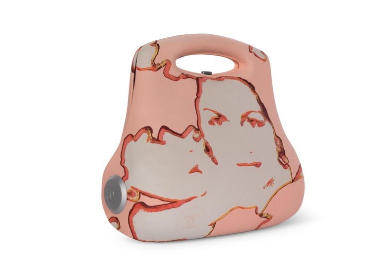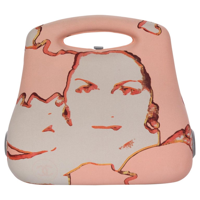 Undoubtedly, Coco Chanel from her earliest days of designing was all about function and convenient use. Even today, the house respects this vision by creating practical and streamlined clothing and accessories. The Chanel butt-Bag is designed with a peculiar shape created to contour around the leg when it is or carried. Coming in a variety of styles, mostly solid leathers, this circa 2000 Chanel Millennium butt-Bag is a rare collectors item. Done in a printed, monochrome silk, Warhol stylized imagery of Coco Chanel is on the front and back of the Bag.