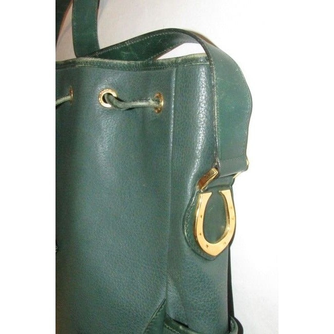 RARE, Gucci, emerald green leather, XL, horse-bit bucket style shoulder bag with horseshoe accents