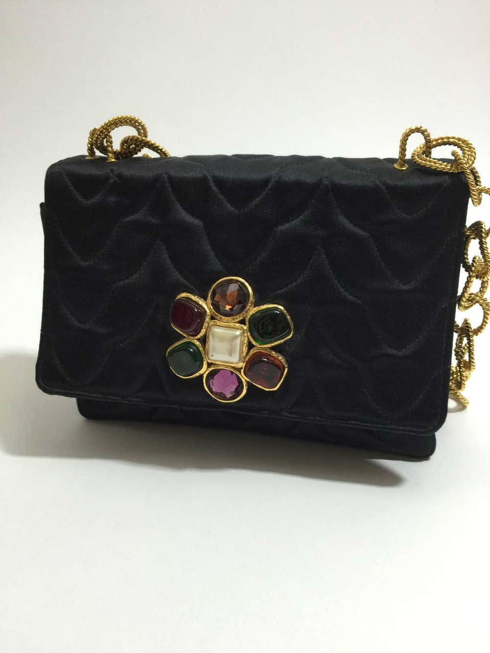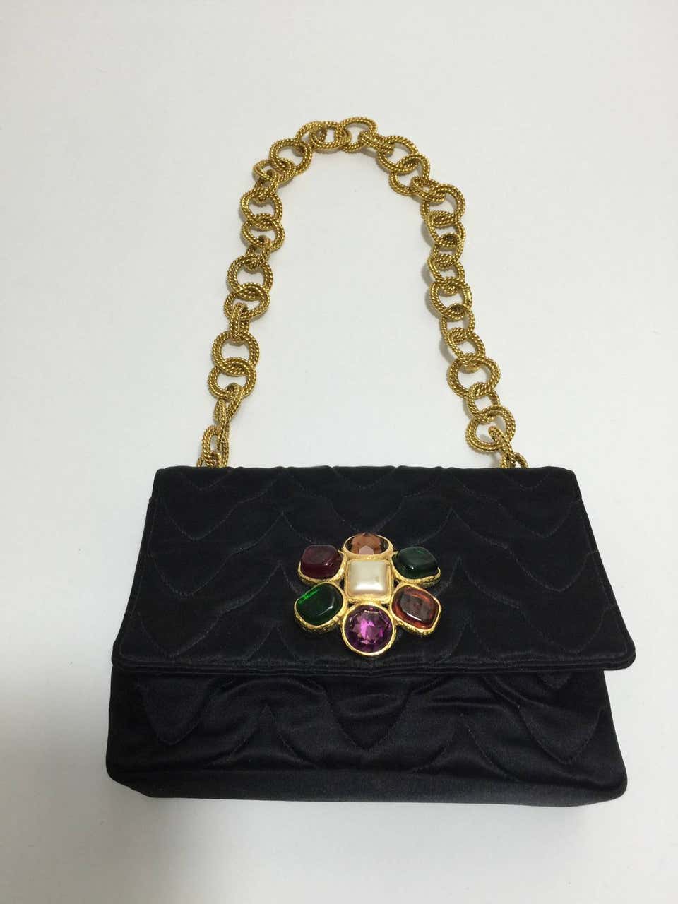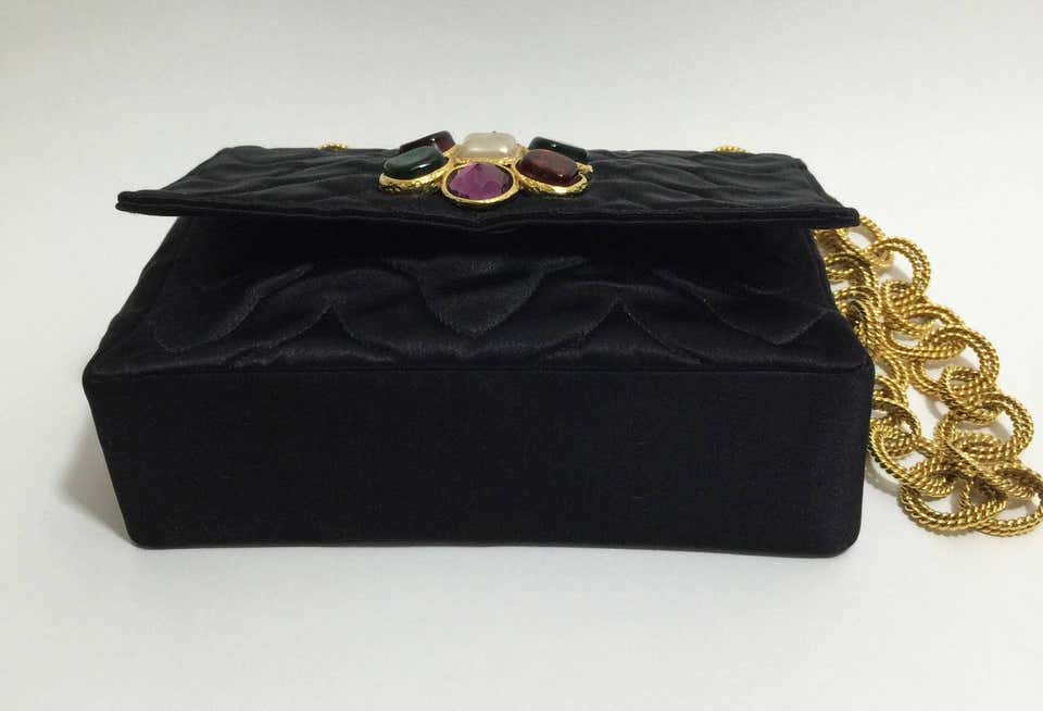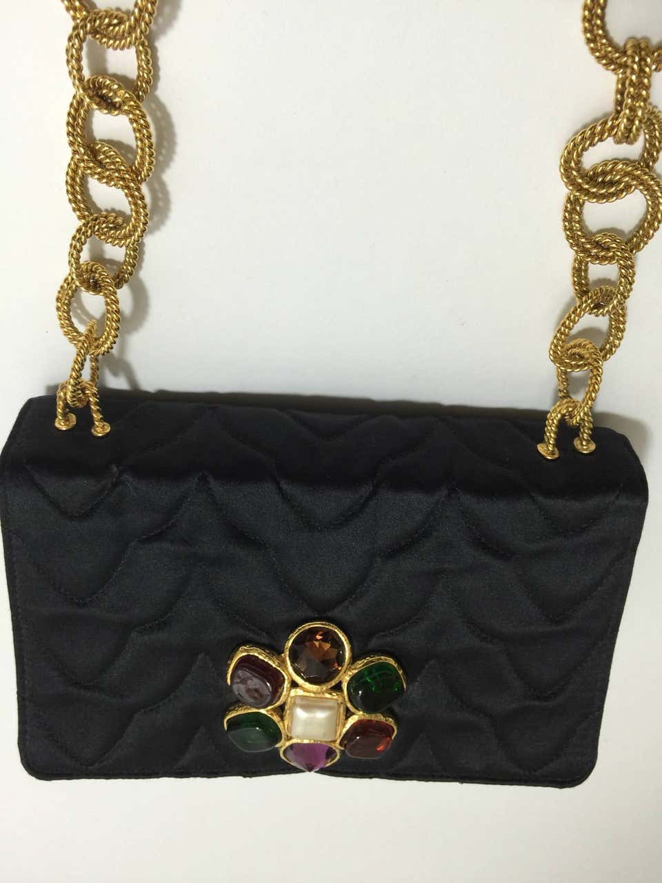 Rare Vintage Chanel Gripoix & Gold Chain Satin Evening Bag / Purse