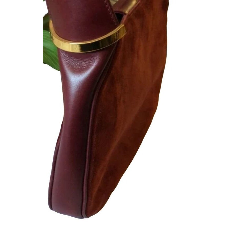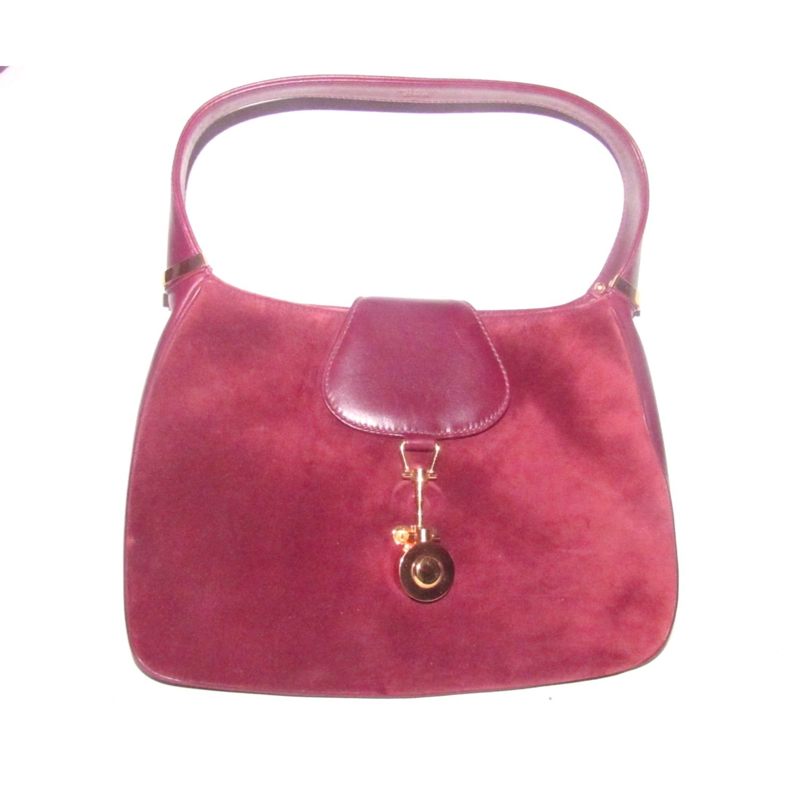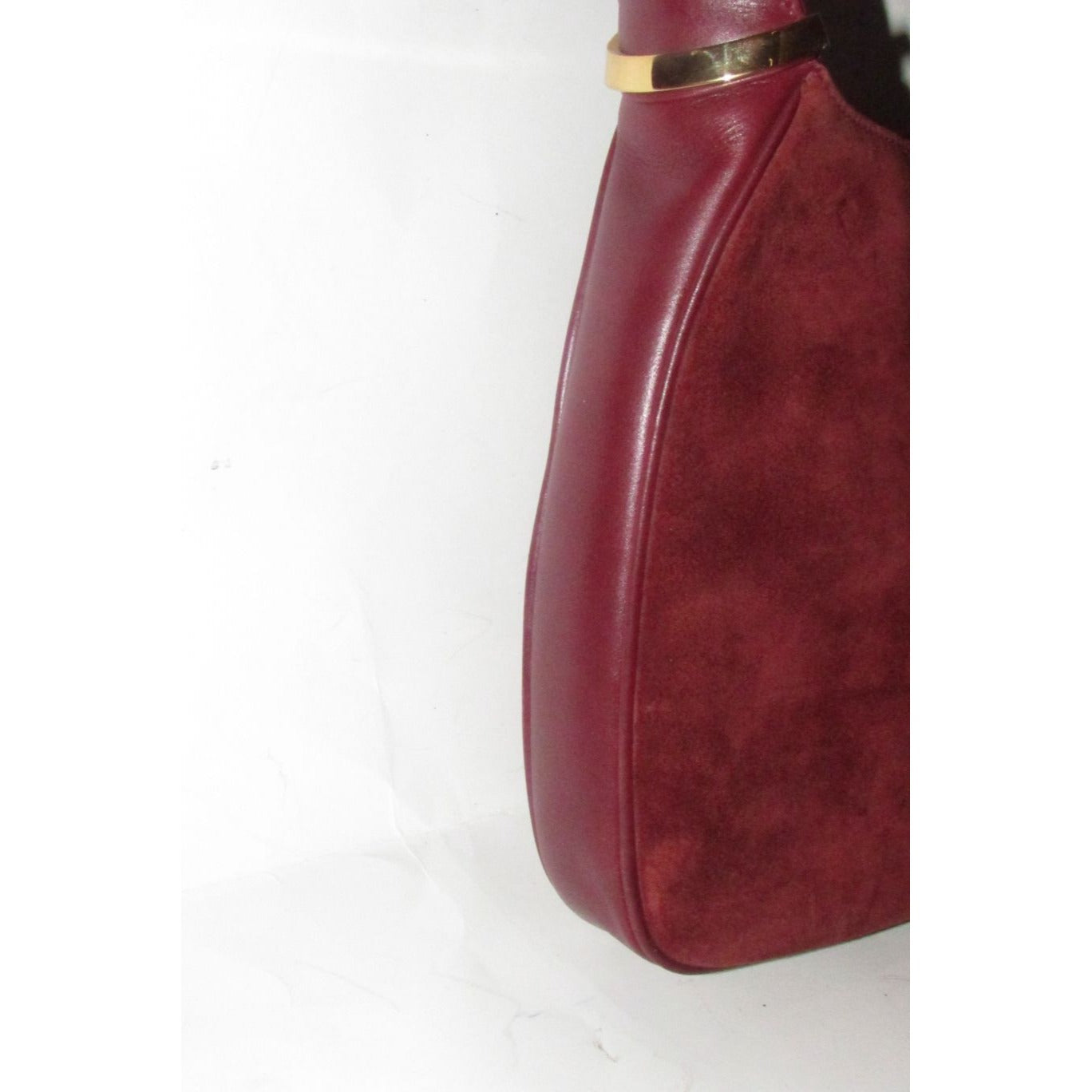 Rare, vintage, Gucci, burgundy leather & suede, unique, 1961 Jackie, hobo style shoulder bag with a two-tone piston closure & flap top