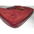 Gucci has made the 1961 Jackie the 'IT' bag for this year by deciding to re-release it! The bag is the perfect Jackie O original by Gucci in the suede and leather version that everyone wants! It is the original, mod, Jackie O hobo style, from Gucci in glossy burgundy leather with a flap top attached to the clasp! It has a two-tone piston closure and the strap extender cannot be adjusted. It is an early version of one of Gucci's signature styles!