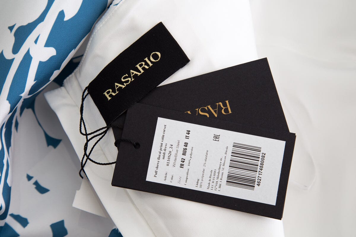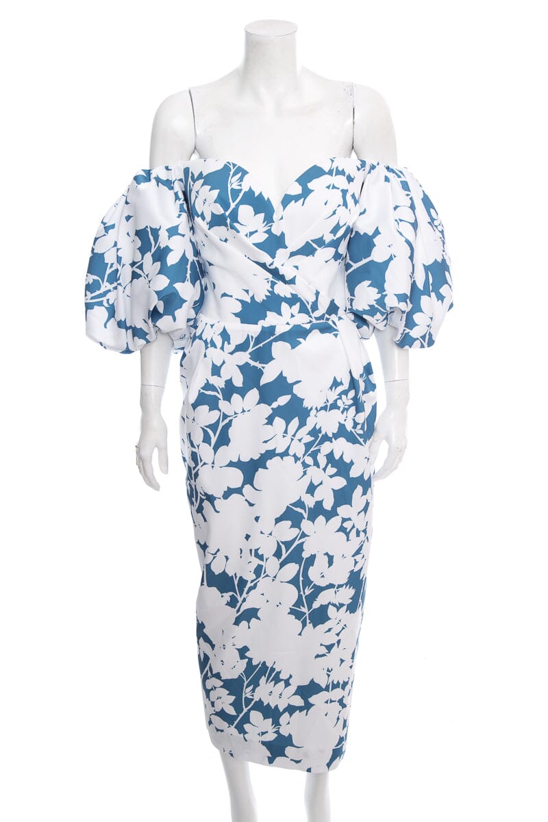Rasario Blue/White floral Puff Sleeve Dress. This item is new with tags.