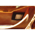 The interior is very clean tan suede leather. There are pockets inside. It is has a gold engraved plaque with Fendi FF Roma, Made in Italy. Inside the pocket is a hologram tag and another Fendi tag. Don't miss out!