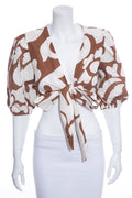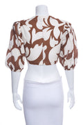 Rhode Ivory & Brown Printed Puff Sleeve Cropped Blouse SZ S
