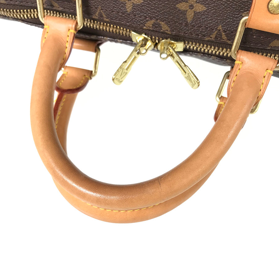 - Handle: Tanned leather has burns, stains, scrub scratches, and stains.