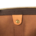 There are burns, stains, scrub scratches, stains, wrinkles, and warping on the logo tag on the tanned leather.
