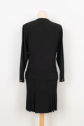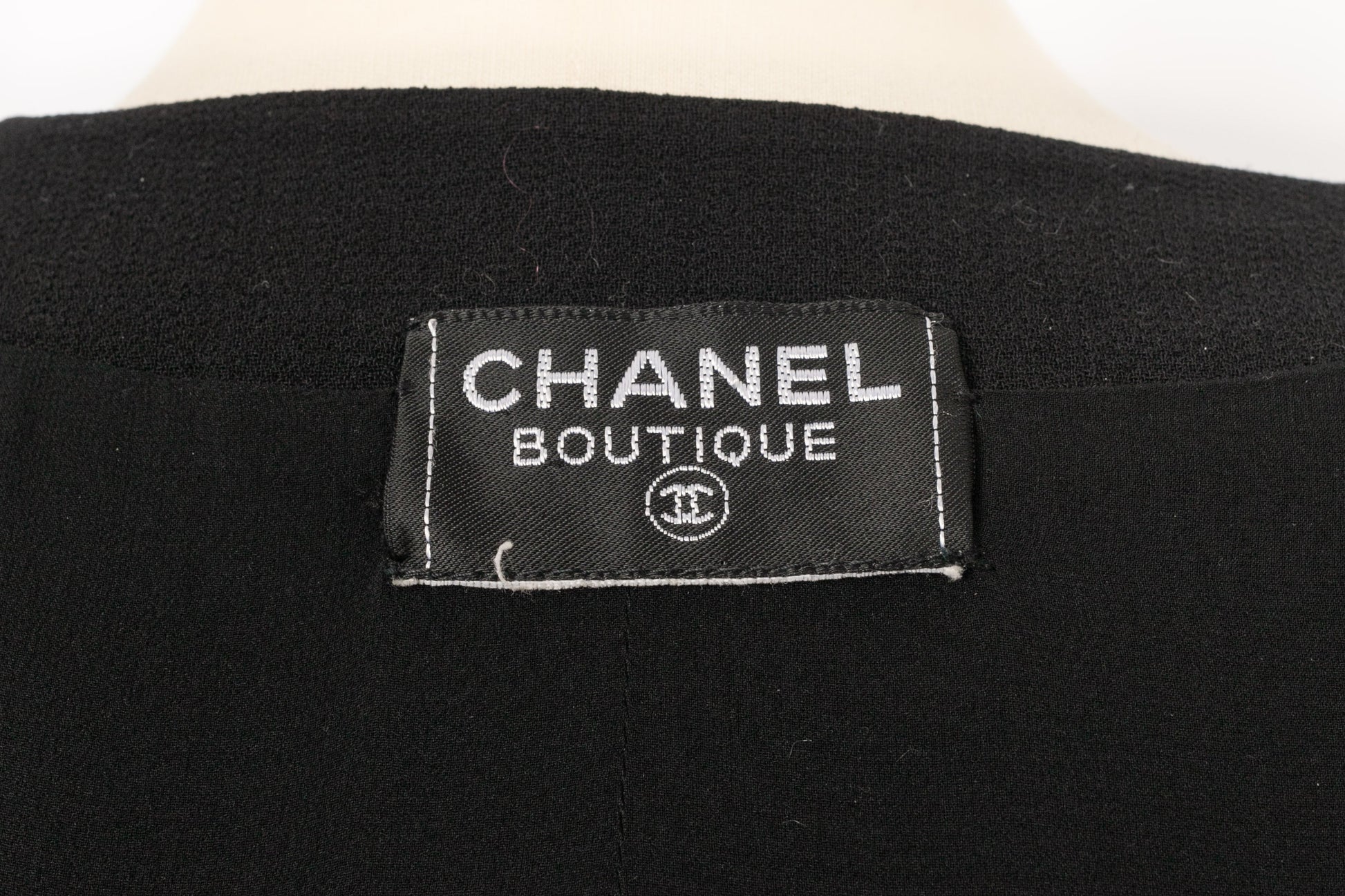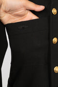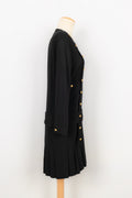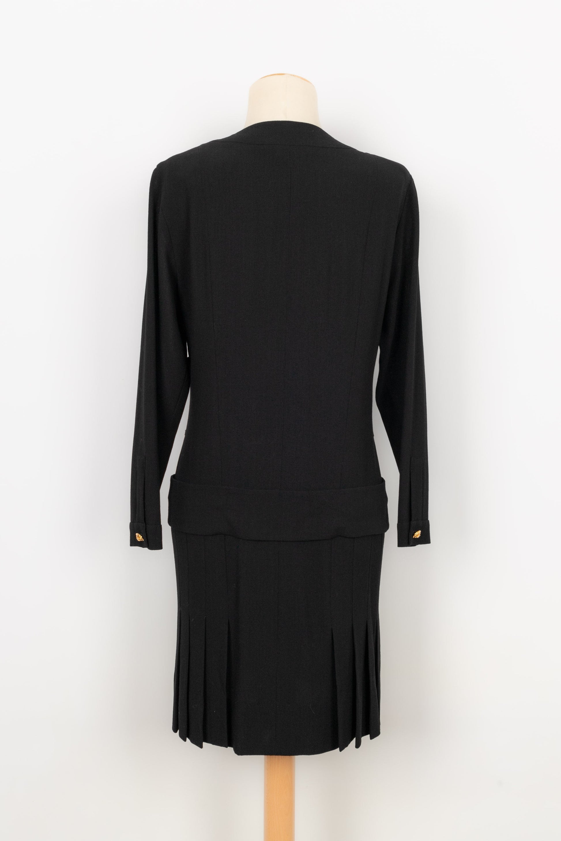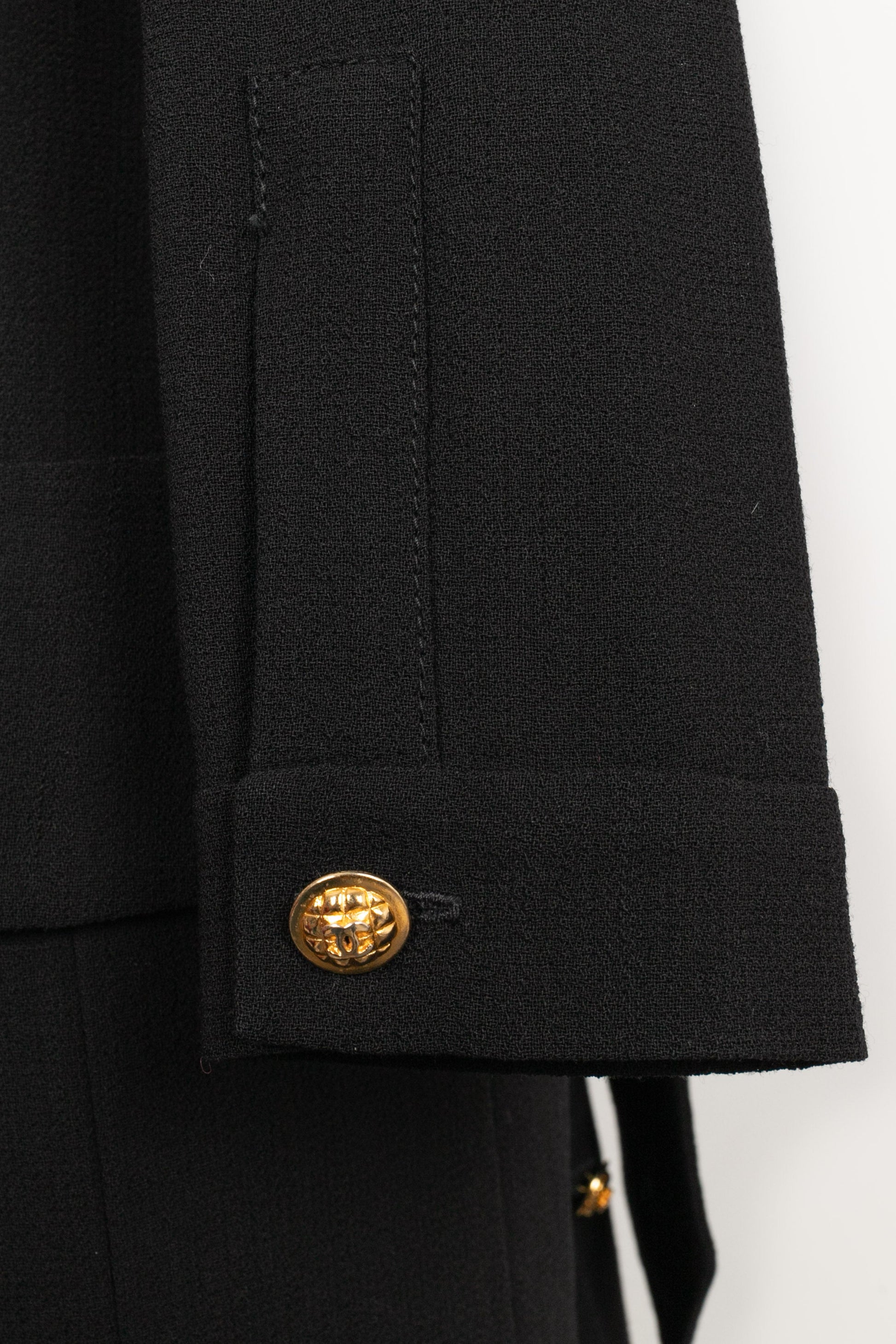 CHANEL - Robe noire � manches longues, agr�ment�e de boutons en m�tal dor�. Pas de taille indiqu�e, elle convient � un 38FR. Pi�ce datant de la fin des ann�es 1980.