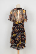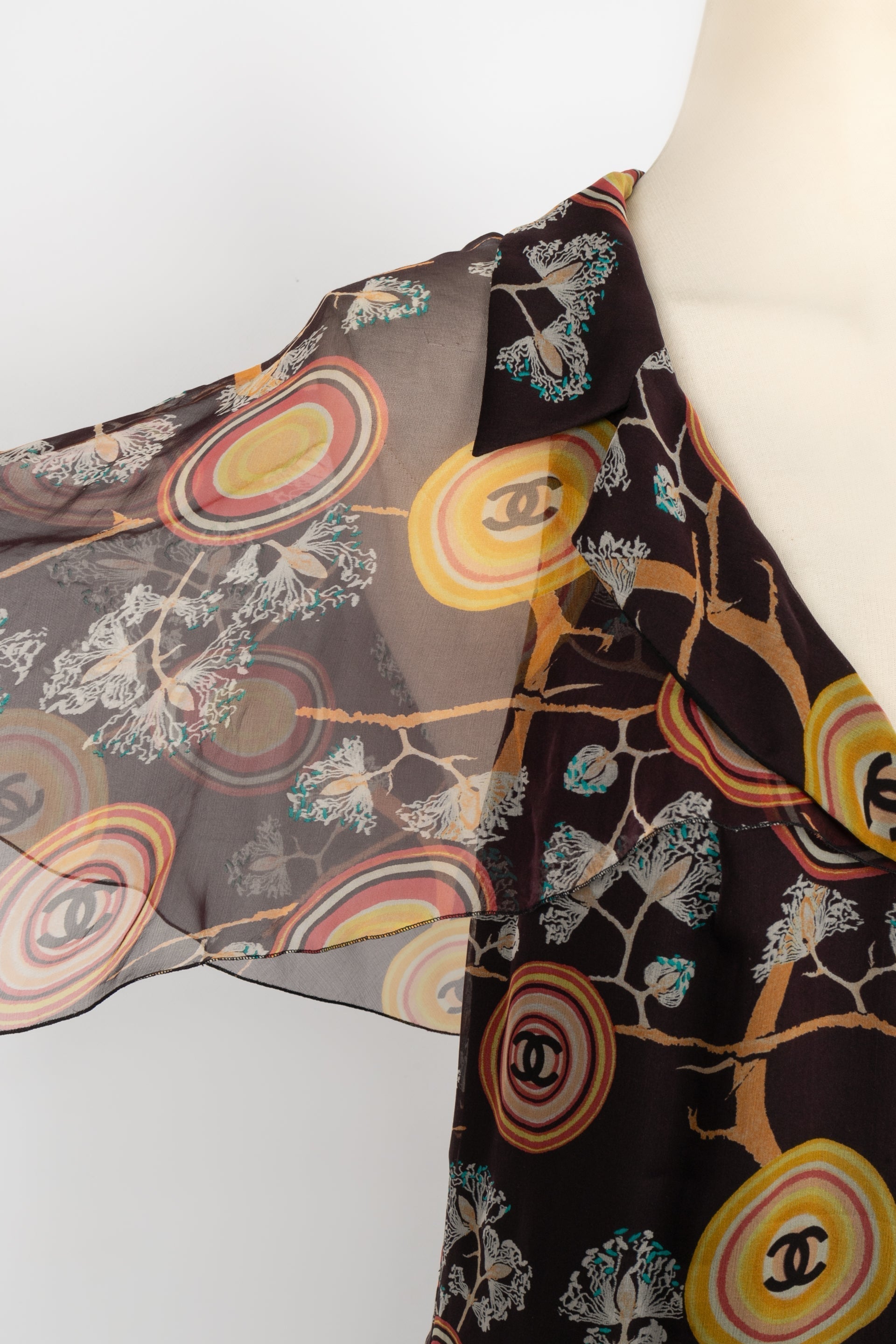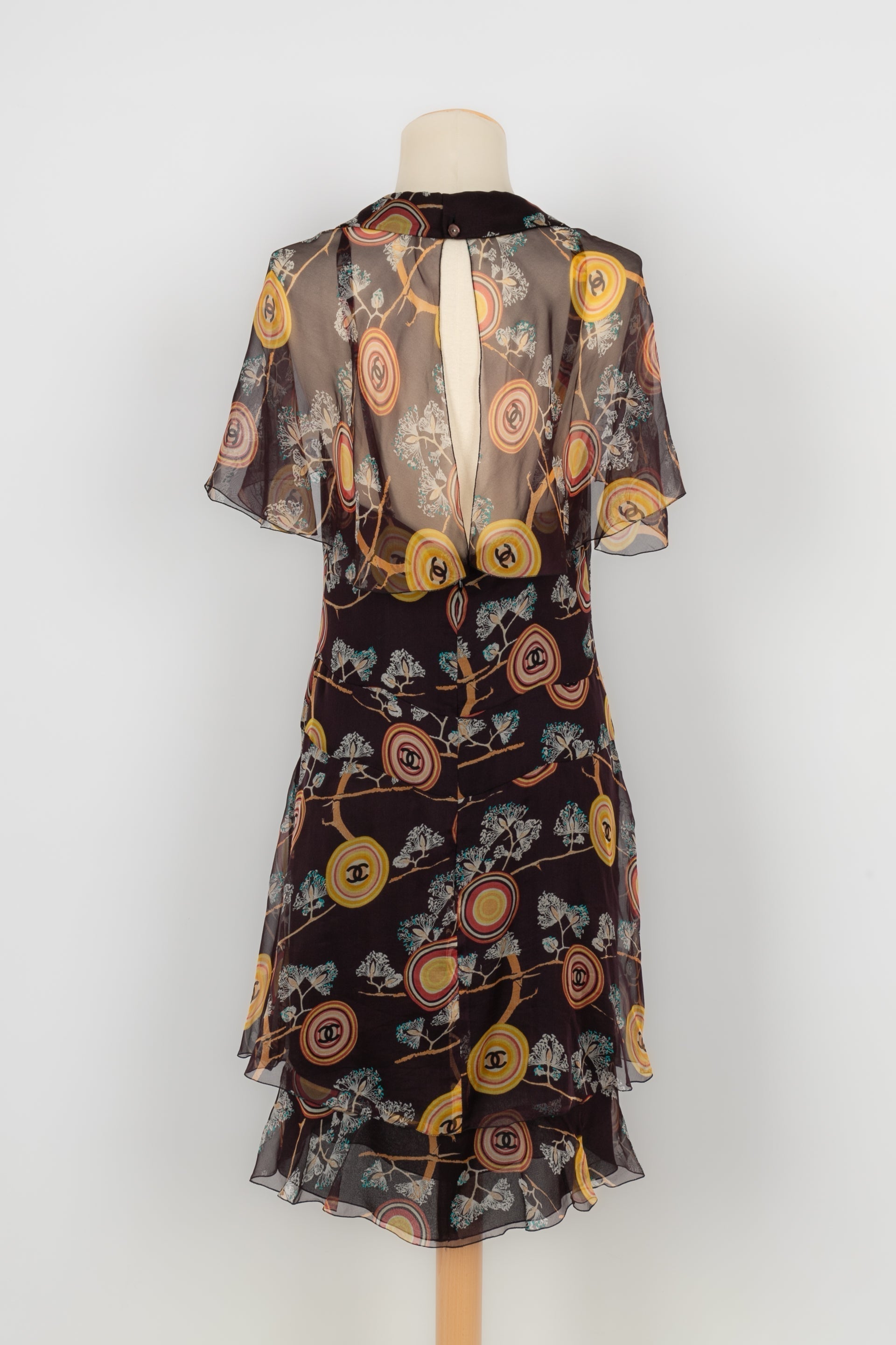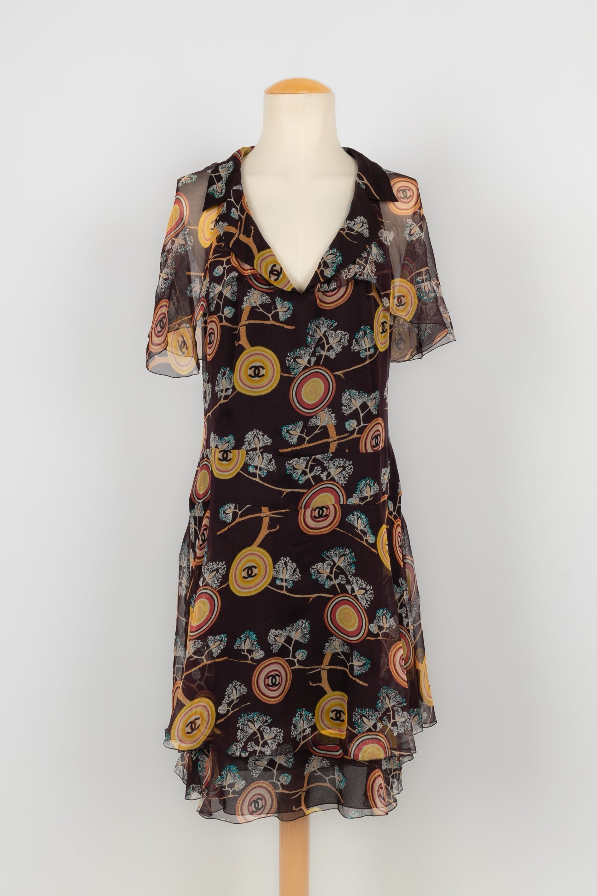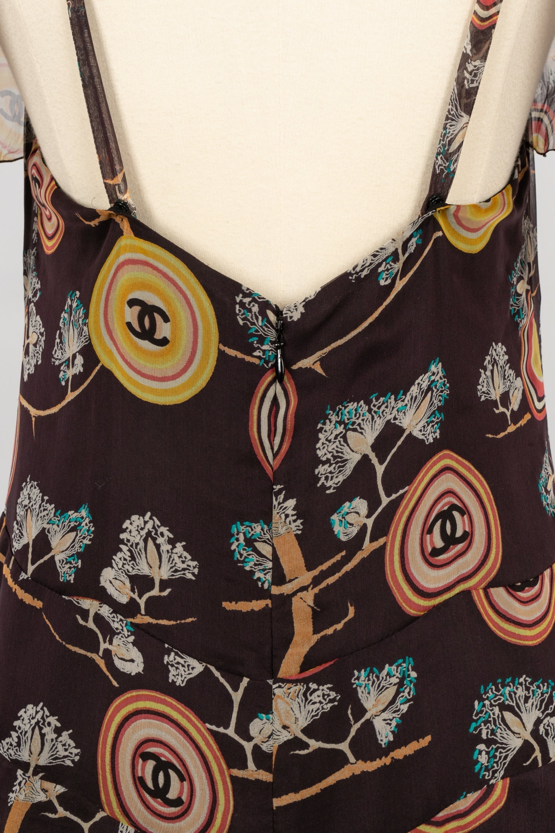 CHANEL - (Made in France) Robe en soie à motifs coloré. Taille indiquée 40FR. Collection Printemps-Eté 2001.