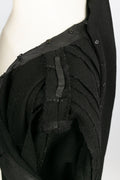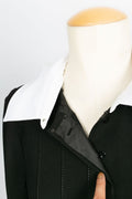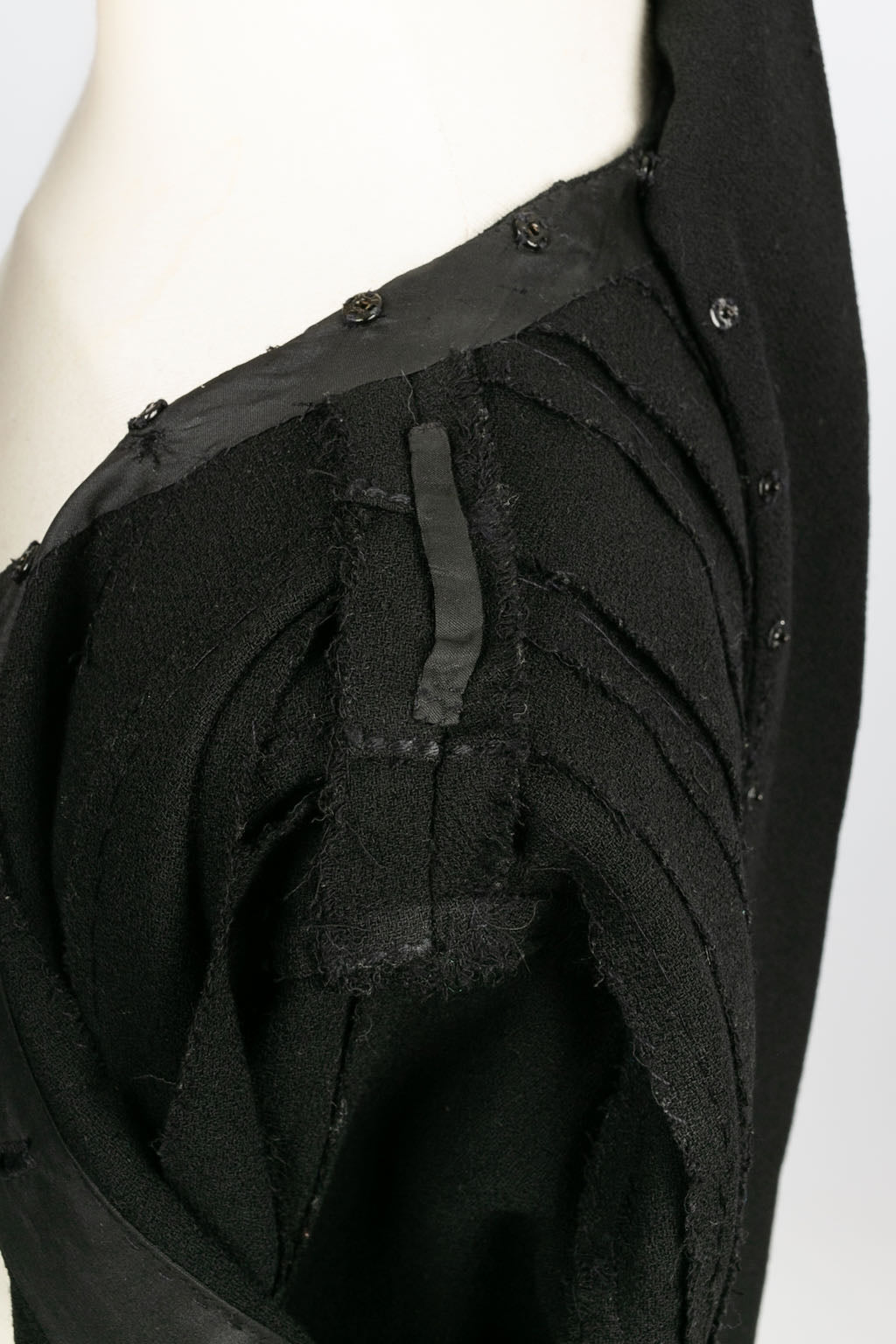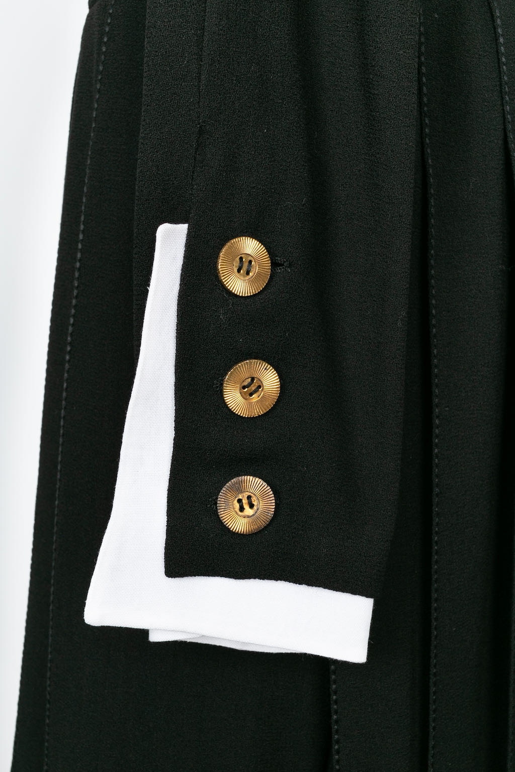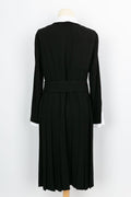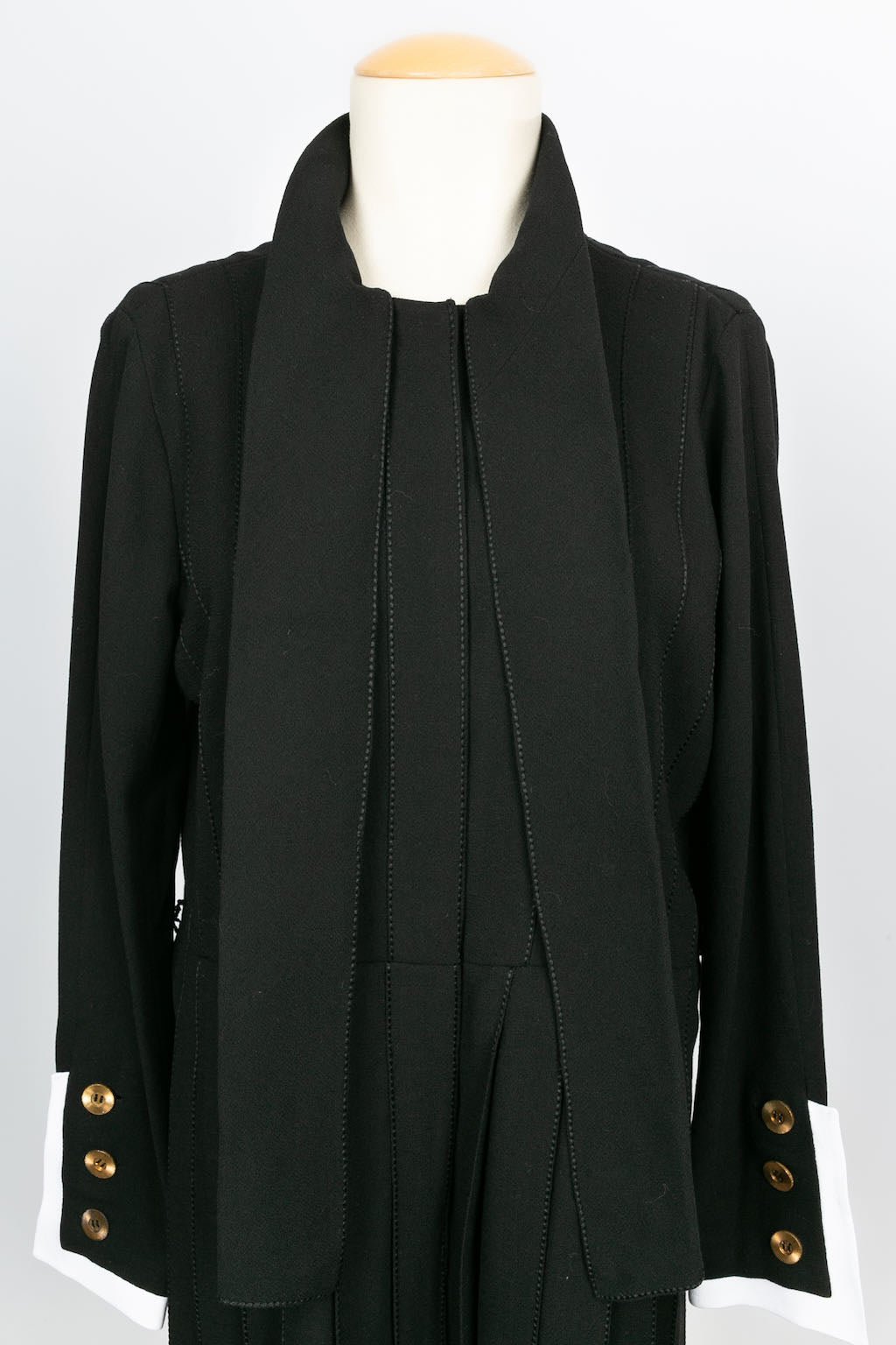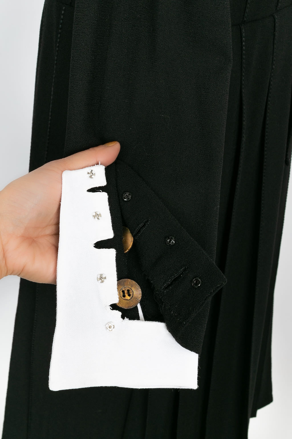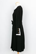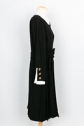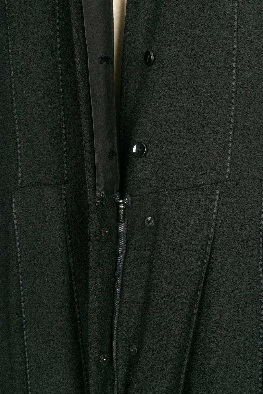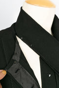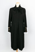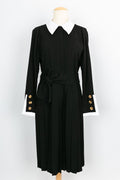 CHANEL -Robe en jersey noir agr�ment� d'un col et de manchettes amovibles. Bolduc num�ro 50707. Pas de taille indiqu�e, elle correspond � un 44FR/46FR.