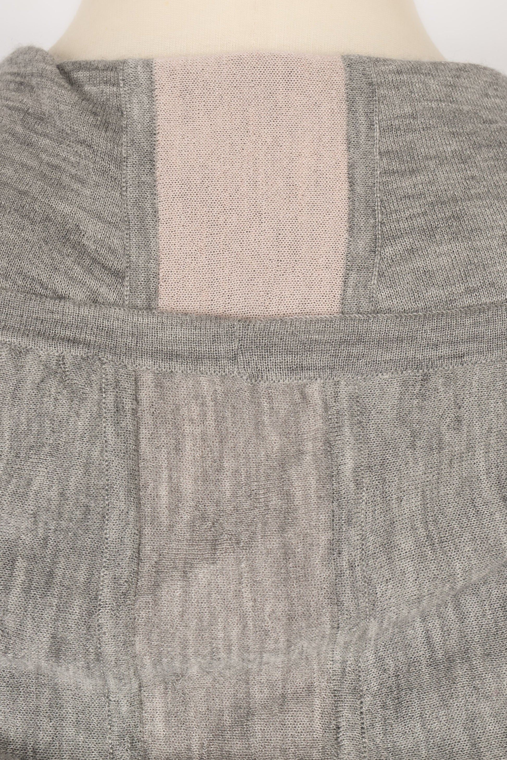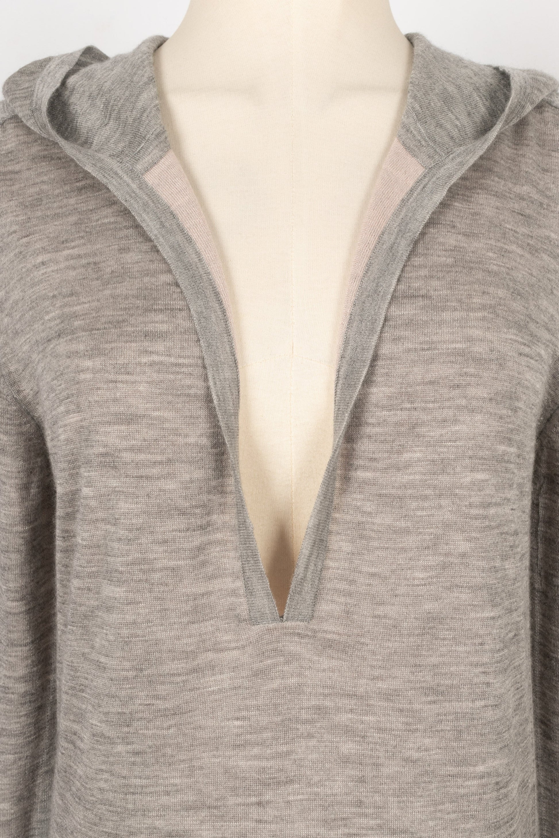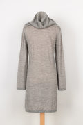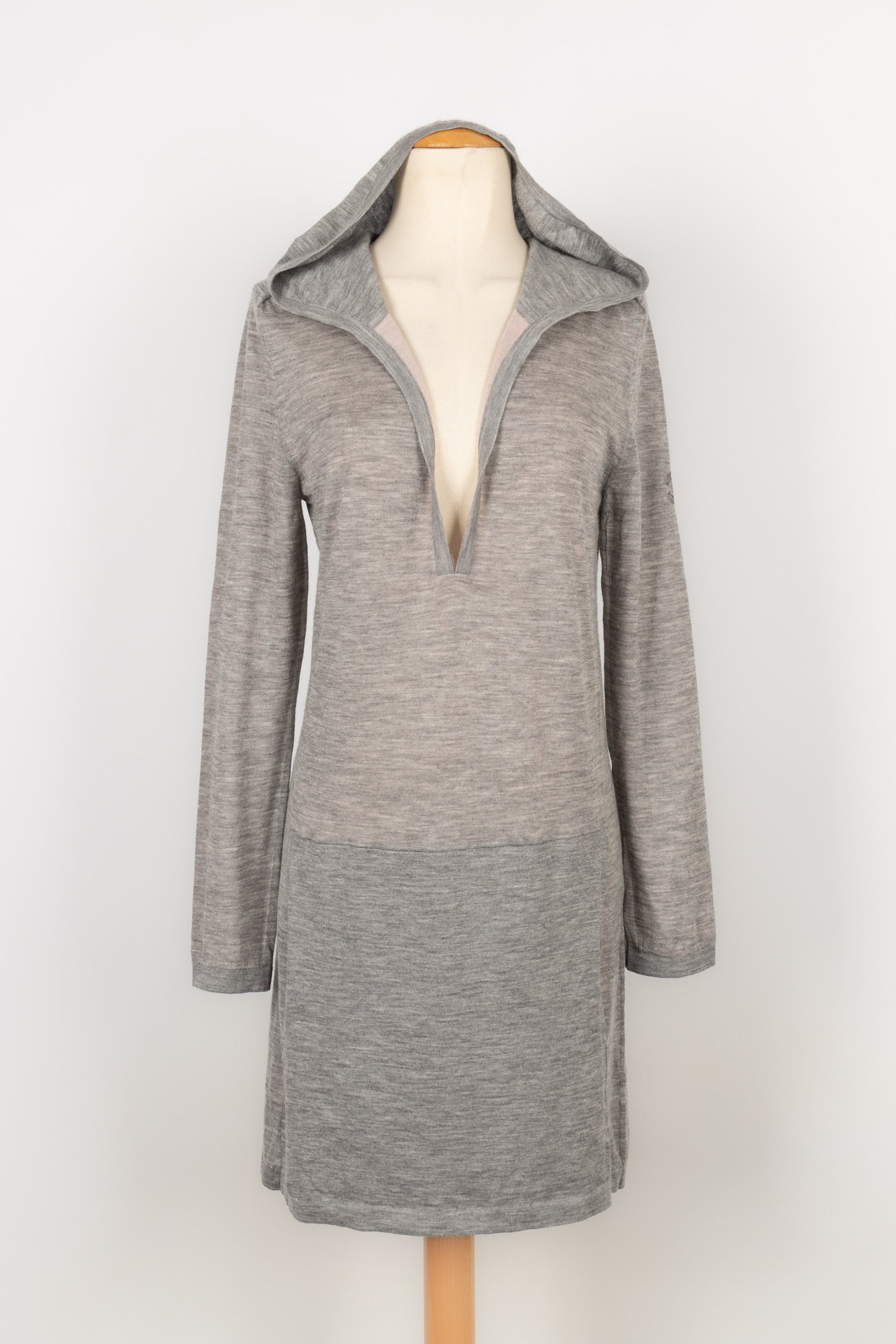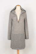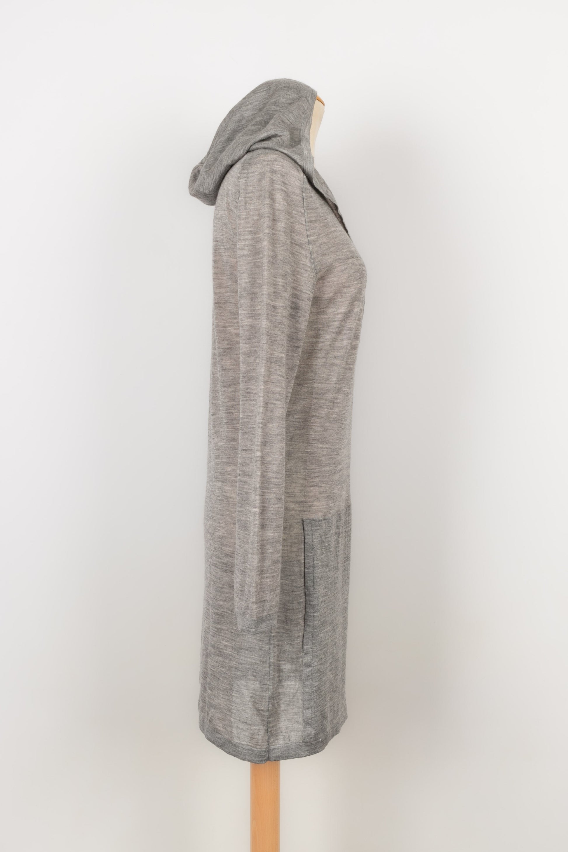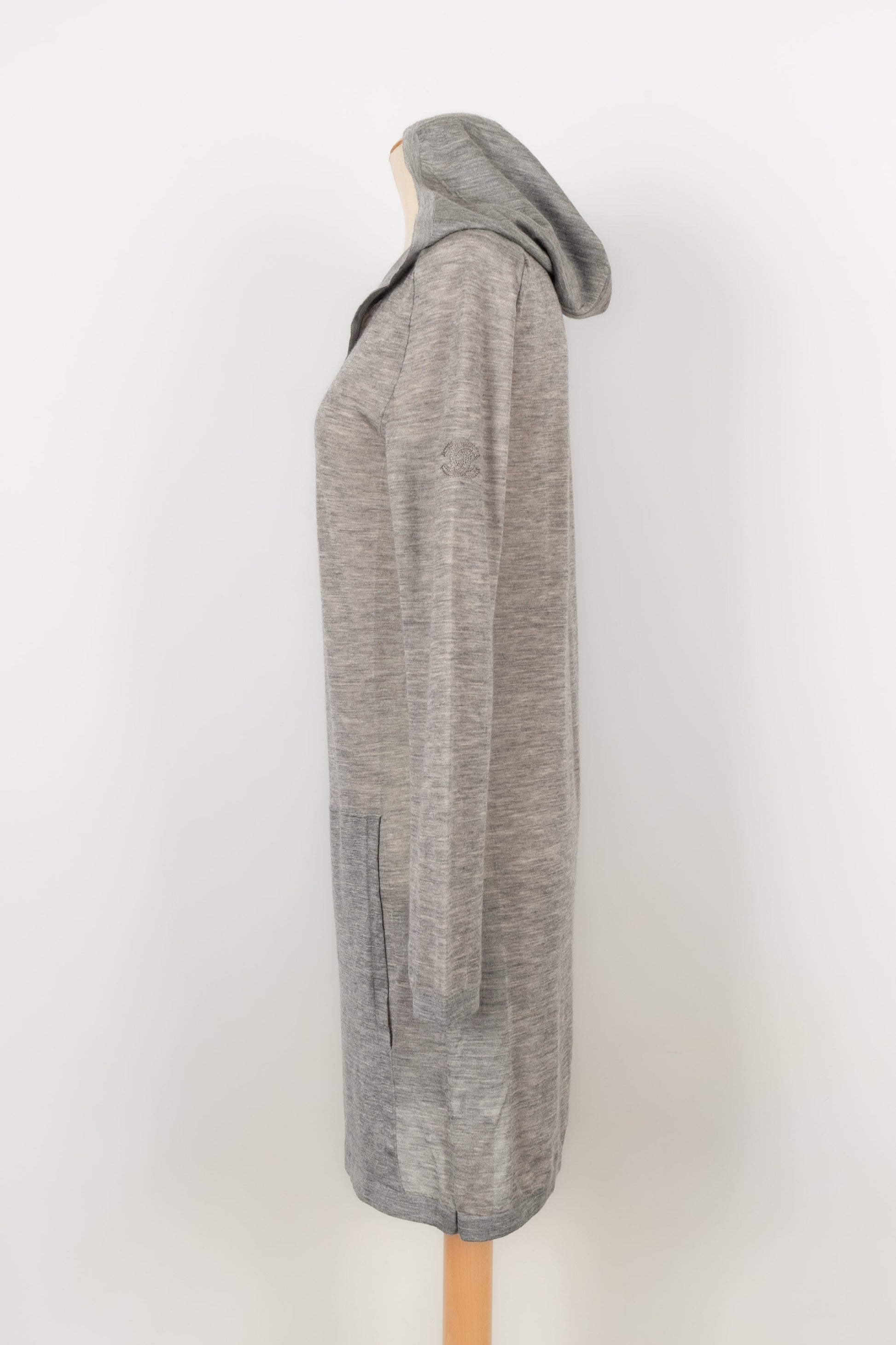CHANEL - Robe pull � capuche en cachemire gris. Pas de taille indiqu�e, elle correspond � un 44FR.