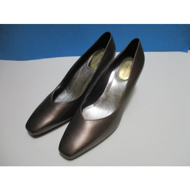 Elegant! Classic bronze metallic squared almond toe. 2-3/4" heels. Signature padded intact insoles are gold and silver metallic. All measurements are approximate.