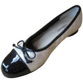 Adorable! Cream quilted ballet flats have black patent toe tips, trim and 2-1/2 inch bow. Padded signature insoles. Rubber soles with 1/2 inch heels. All measurements are approximate.