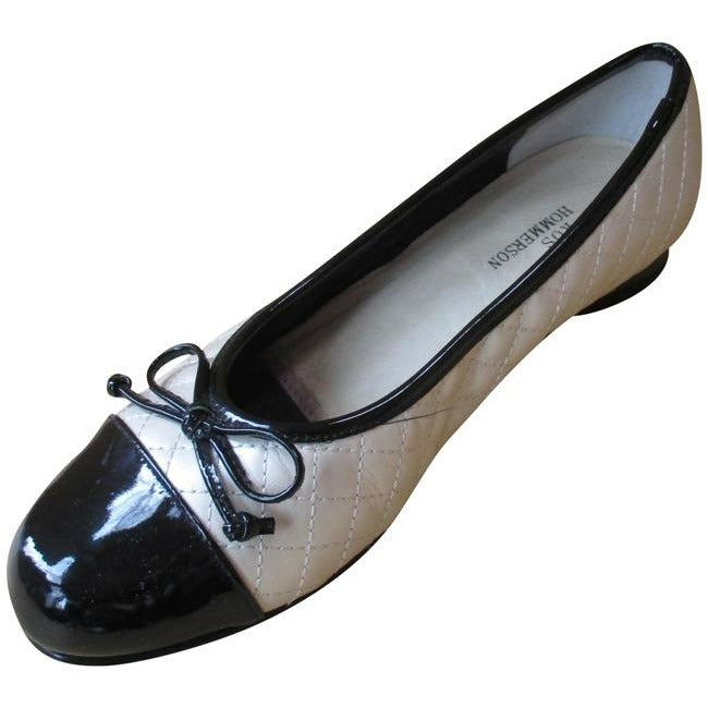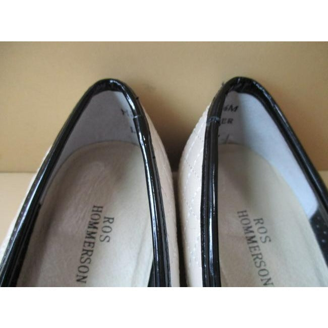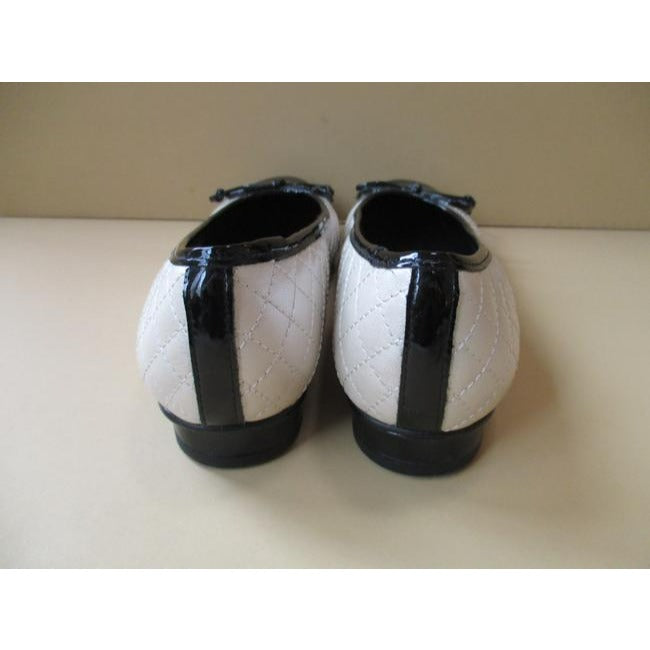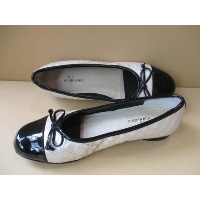 Ros Hommerson Cream Quilted Ballet Black Patent Accent Flats Size Us
