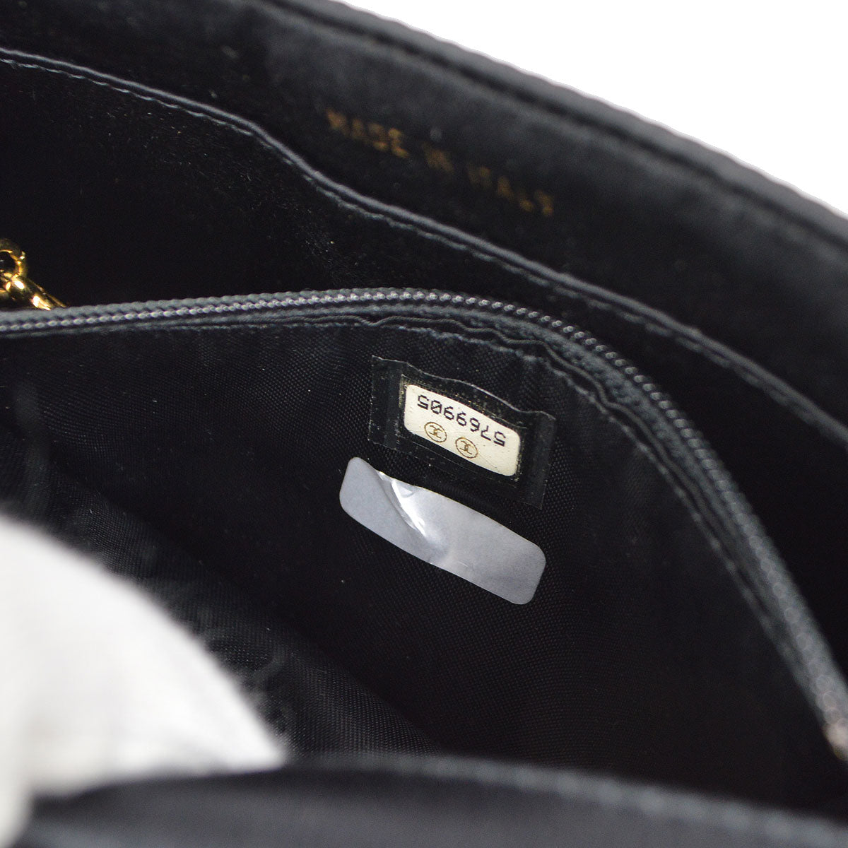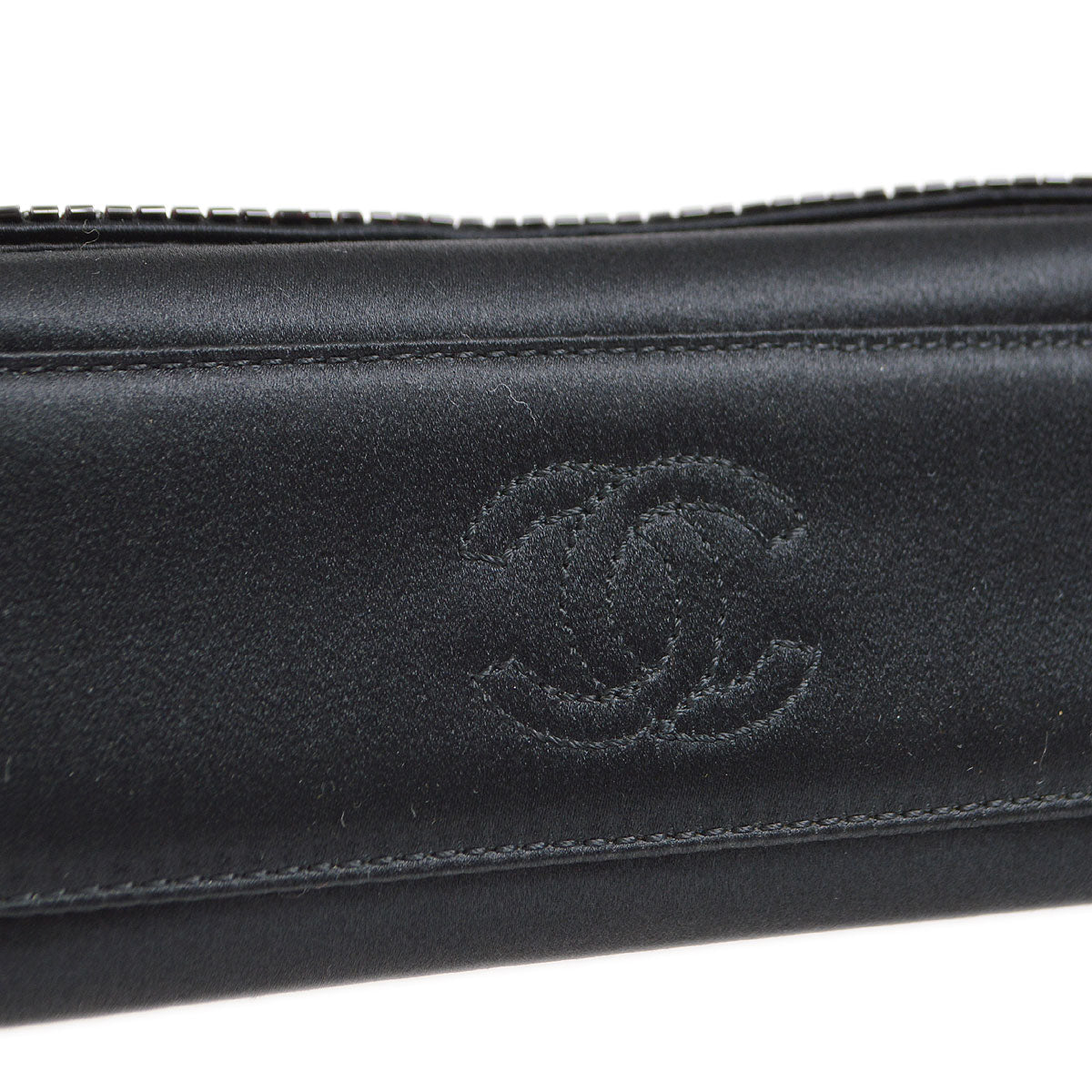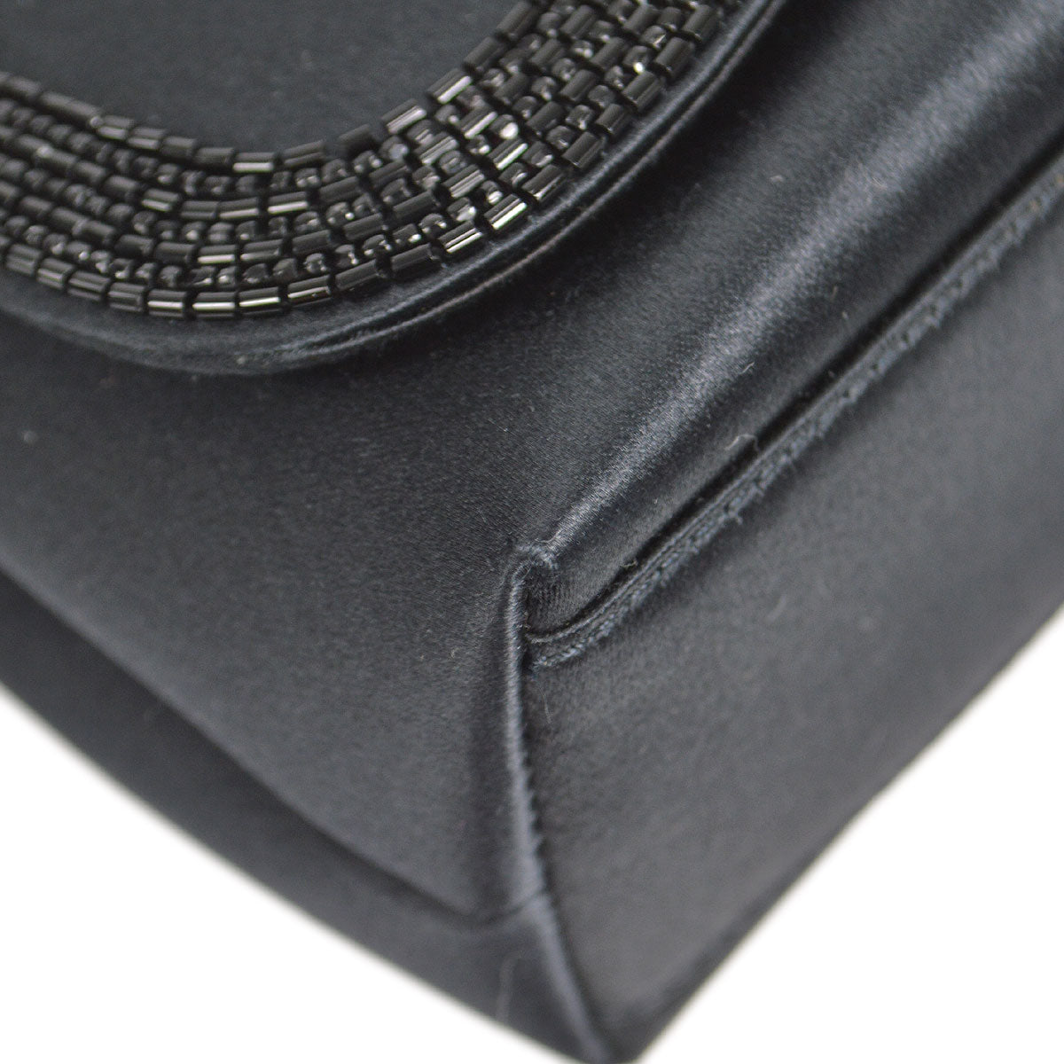 CHANEL 1997-1999 Bead Shoulder Bag Black Satin