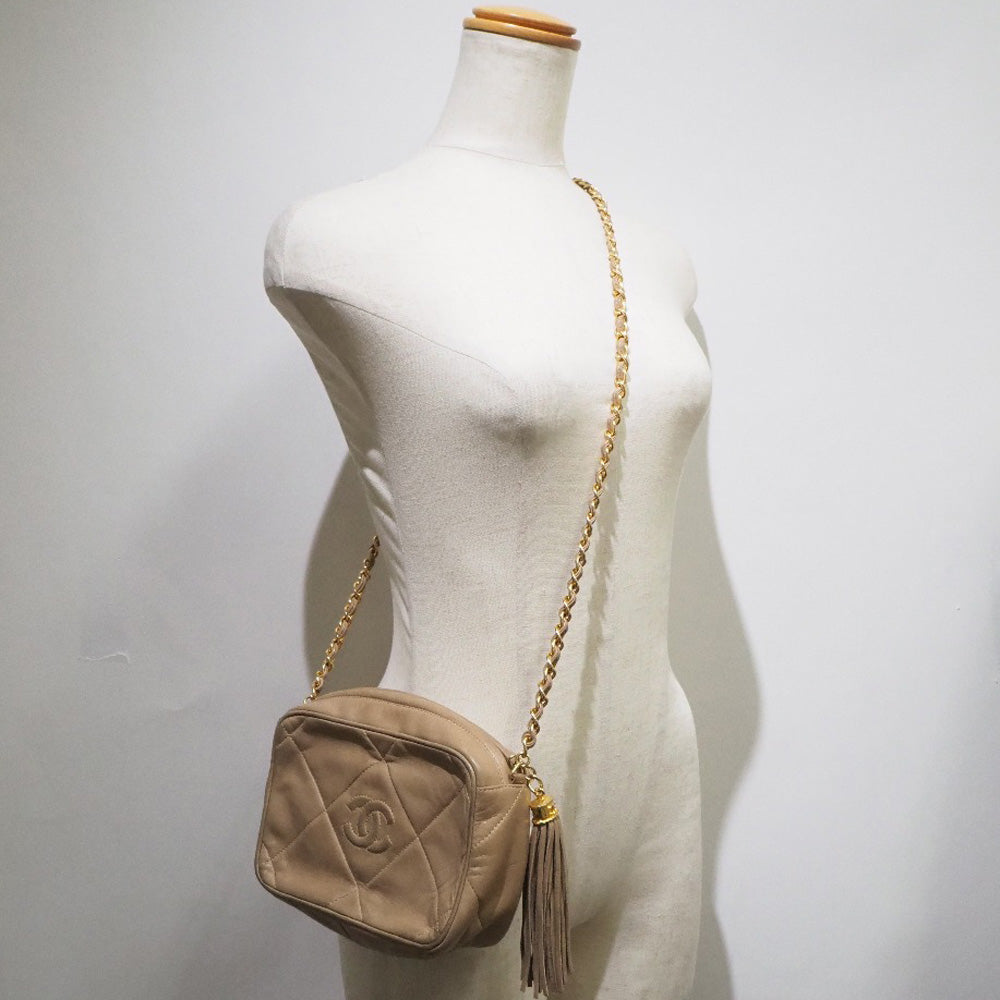 CHANEL Shoulder Bag lambskin beige Matrasse Fringe ChainShoulder Women Used
