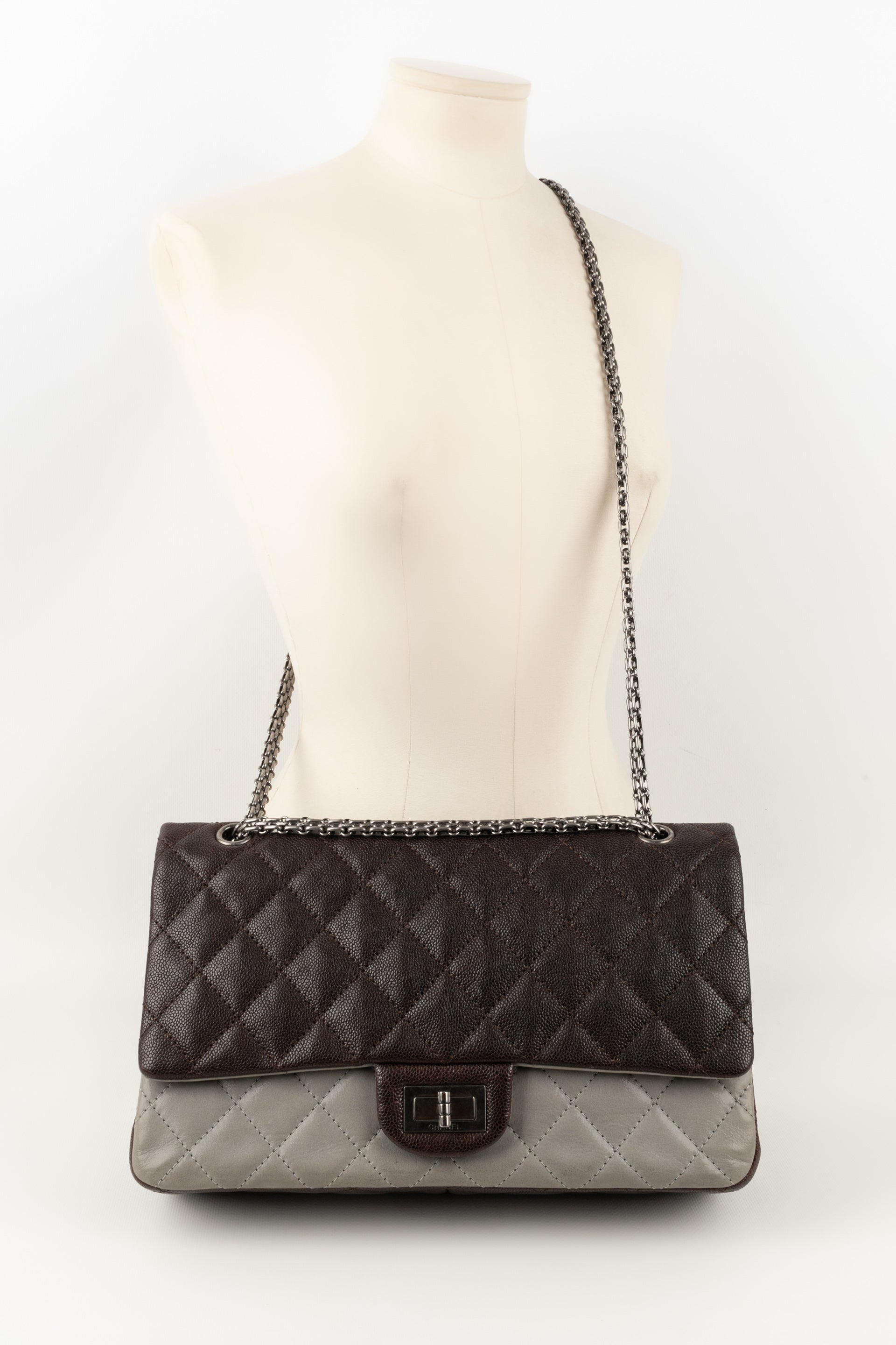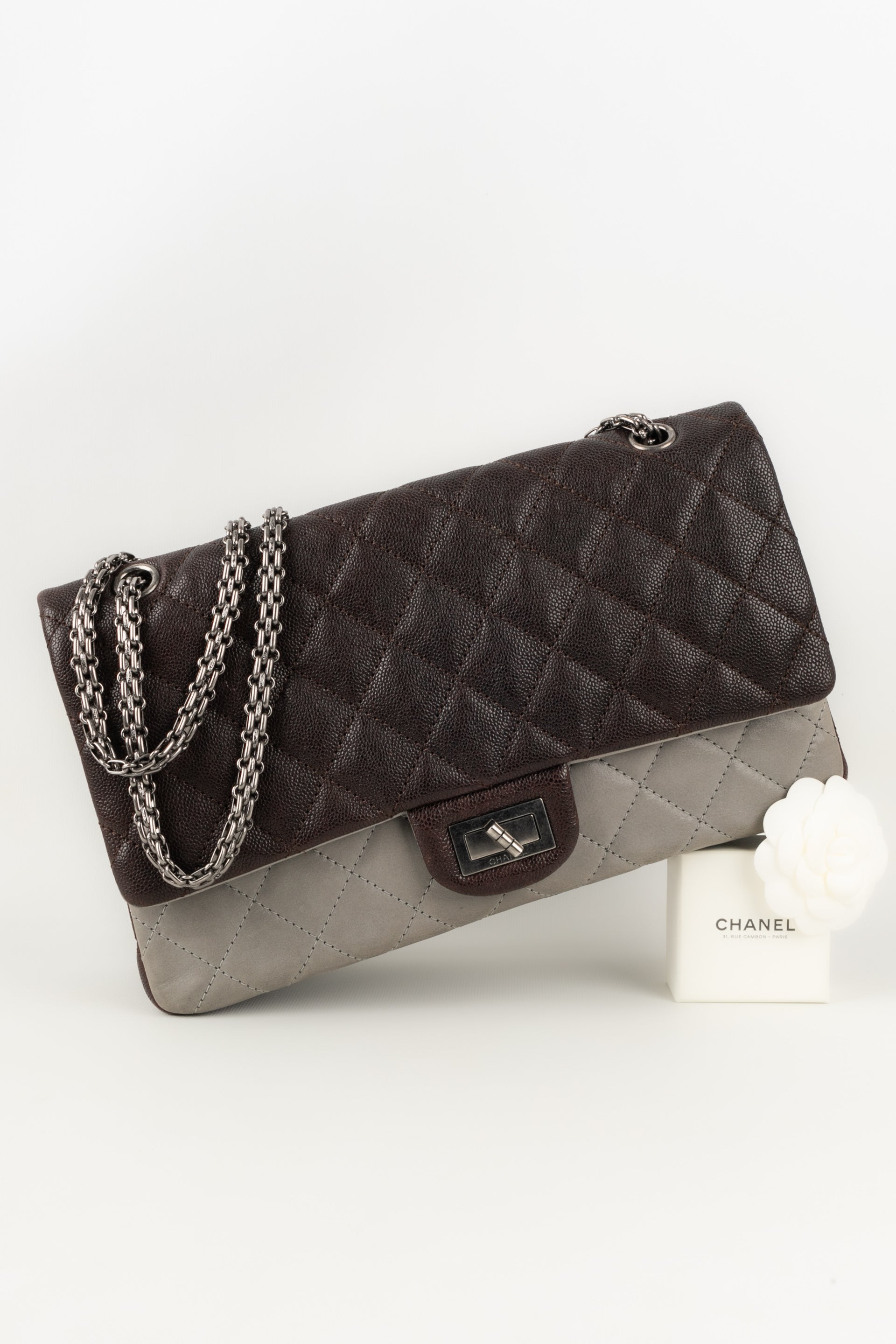 CHANEL - (Made in France) Sac en cuir et cuir grainé, attributs en métal argenté. Numéro de série présent. Collection 2010/2011.