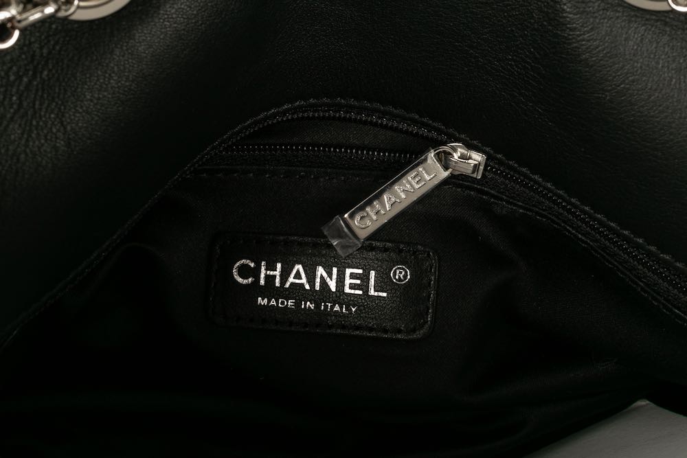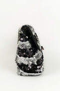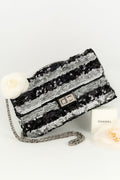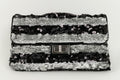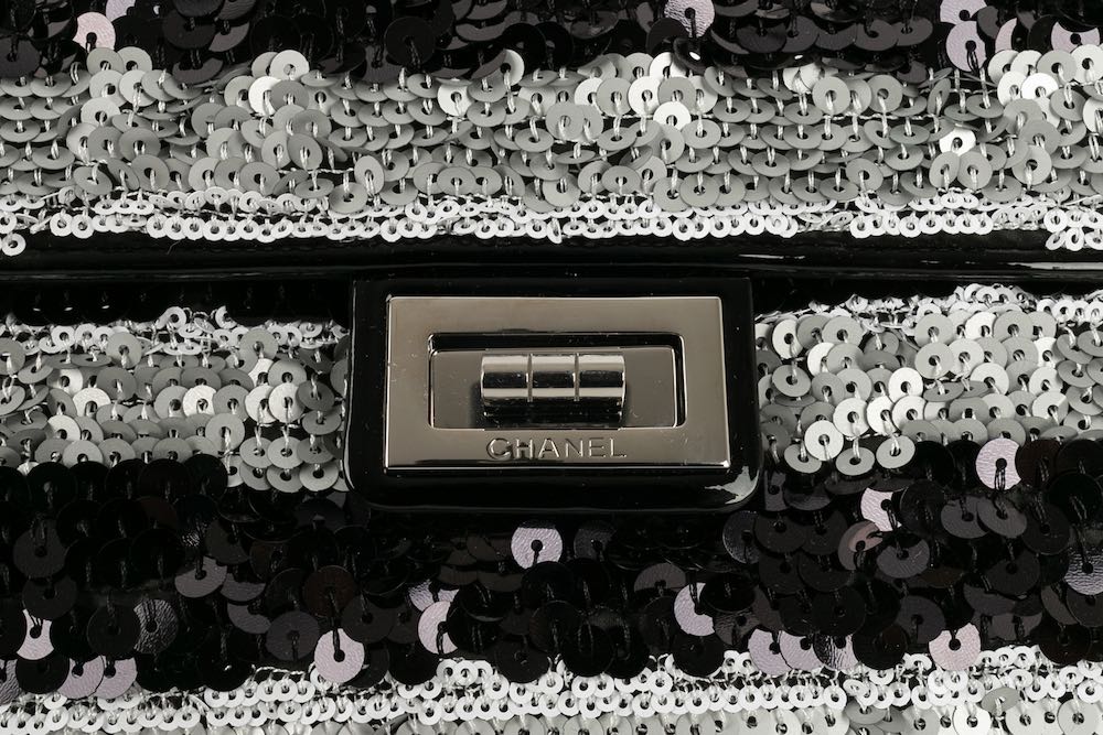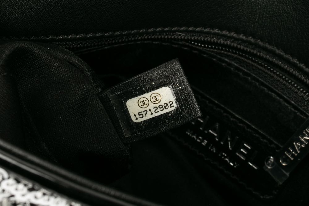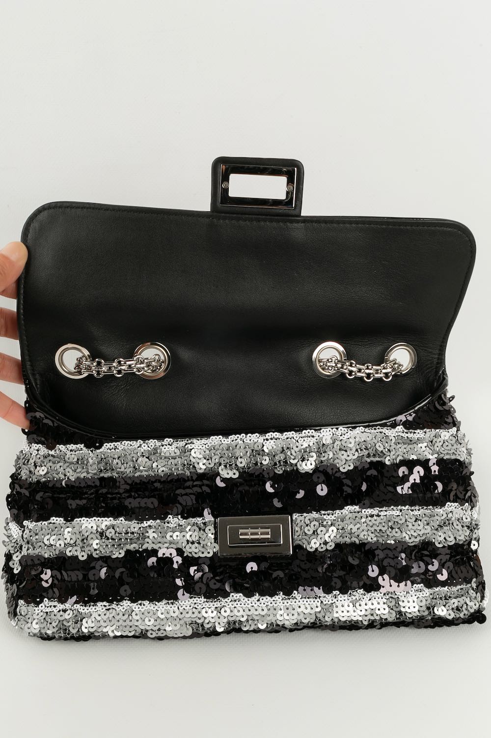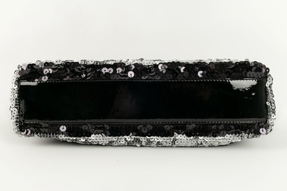 CHANEL - (Made in Italy) Sac � paillettes noires et argent�es et attributs en m�tal argent�. Num�ro de s�rie pr�sent. Collection 2011.