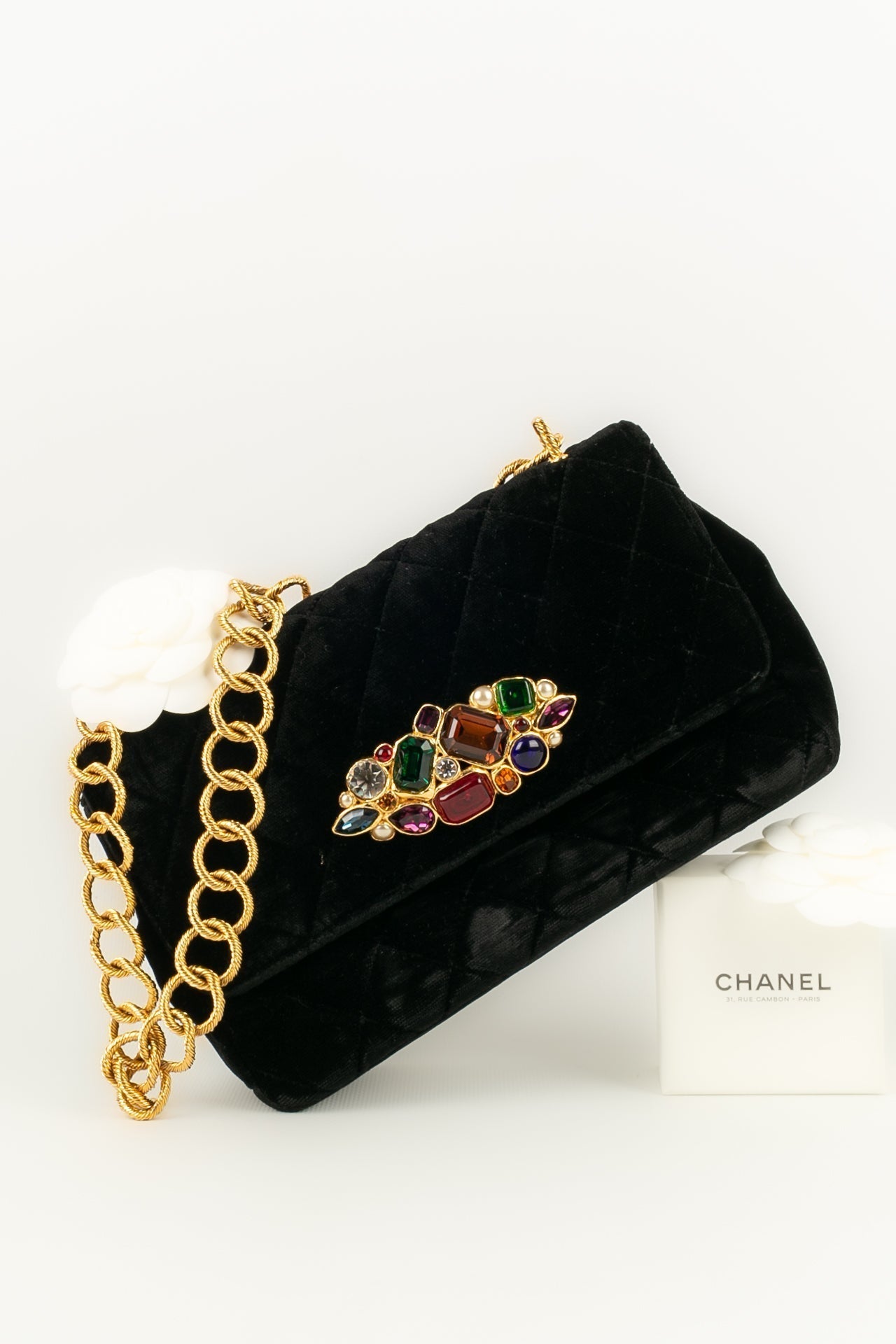Note: Our Items are totally New High quality Brand Inspired Refurbished. Please make sure you are well aware of it before buying any of the Item. T&C's Apply in case of refunds.Please send us message on below chat to confirm availability. We will send the Refurbished Model in case you place an order with us. Enjoy Shopping.Always Send Us message to confirm availability before buying, In case of refund the transaction fee remains non refundable.�Thank�you. Sac en velours noir matelass� et fermeture bijou en m�tal dor� et p�te de verre. Collection 1989/1991.