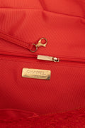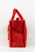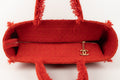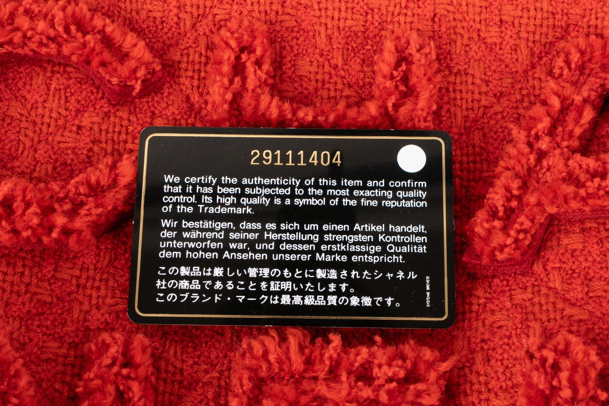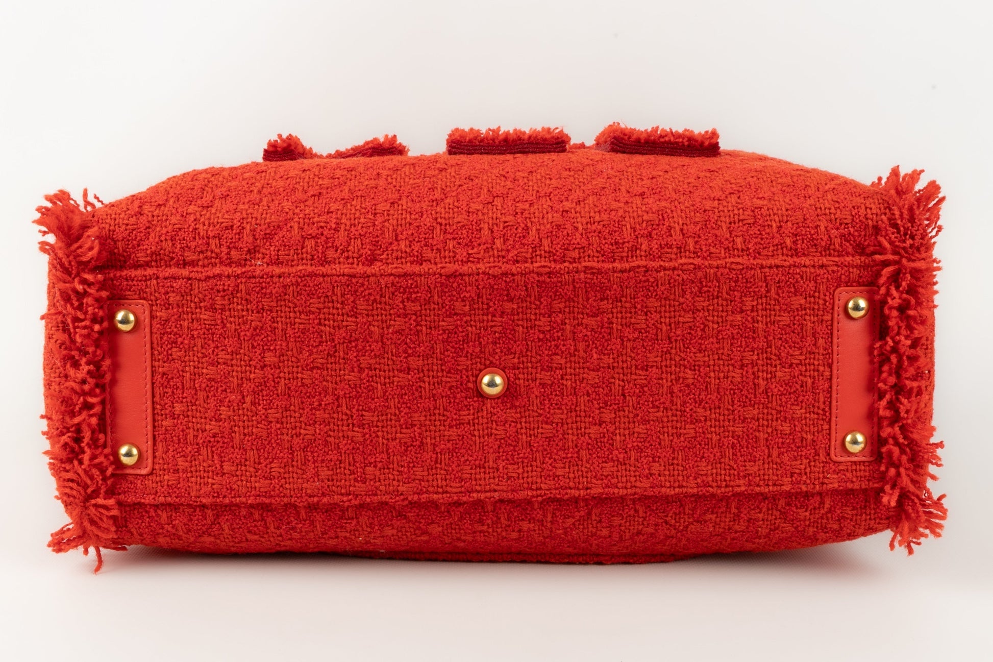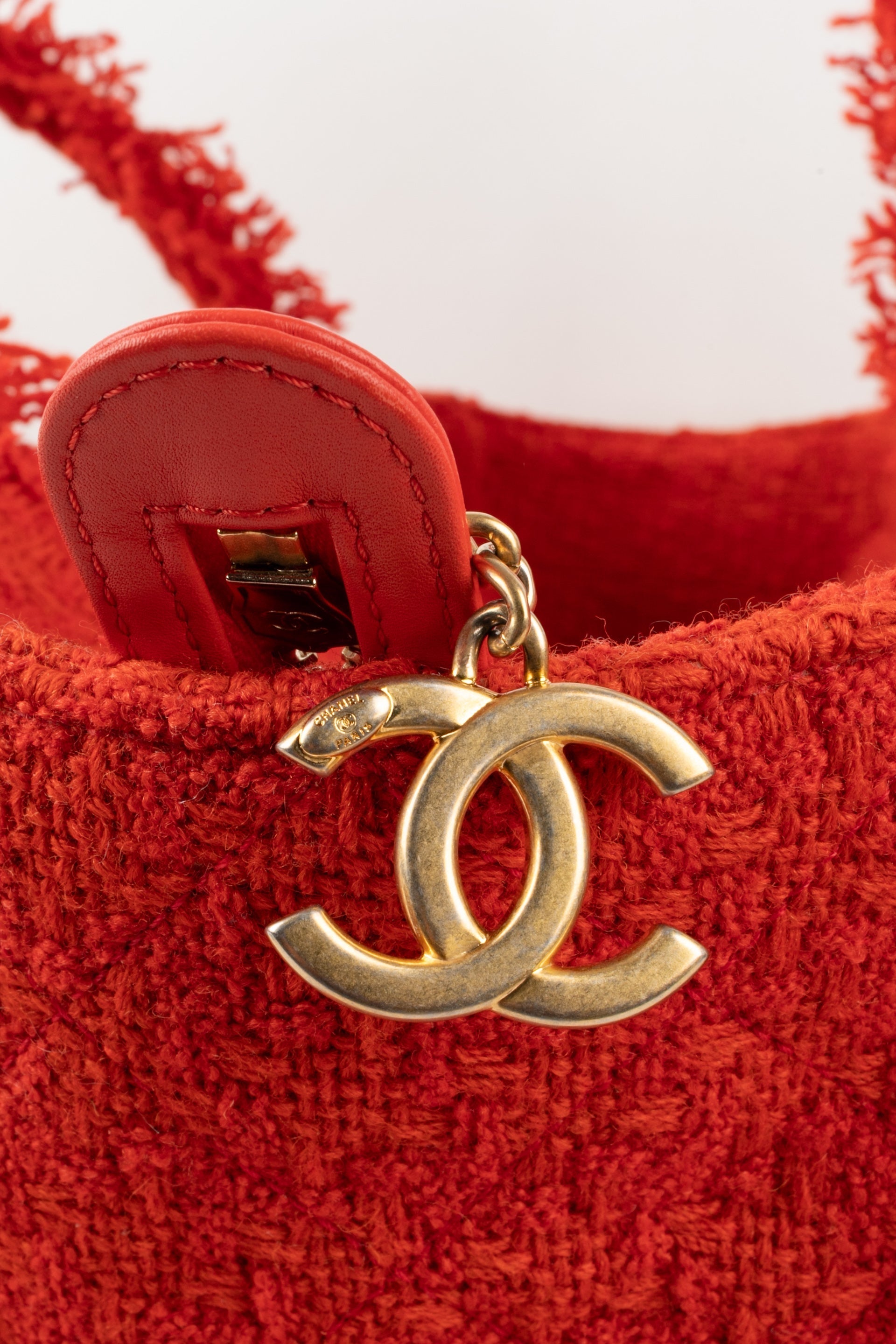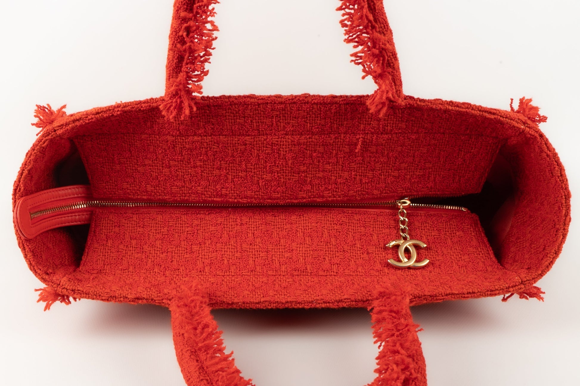 CHANEL -(Made in Italy) Sac cabas en tweed rouge, attributs en métal doré. Numéro de série présent et carte d'ité présents. Collection 2019.