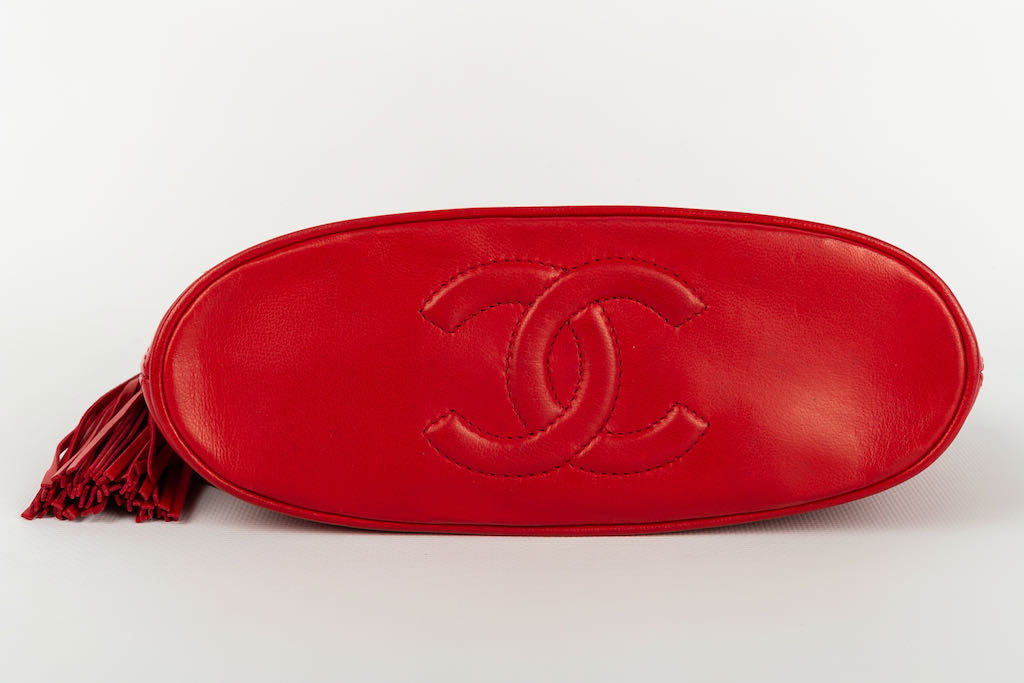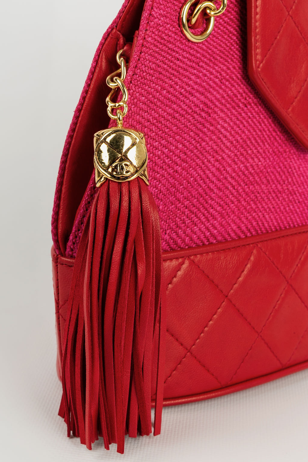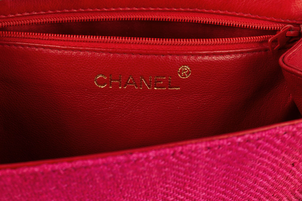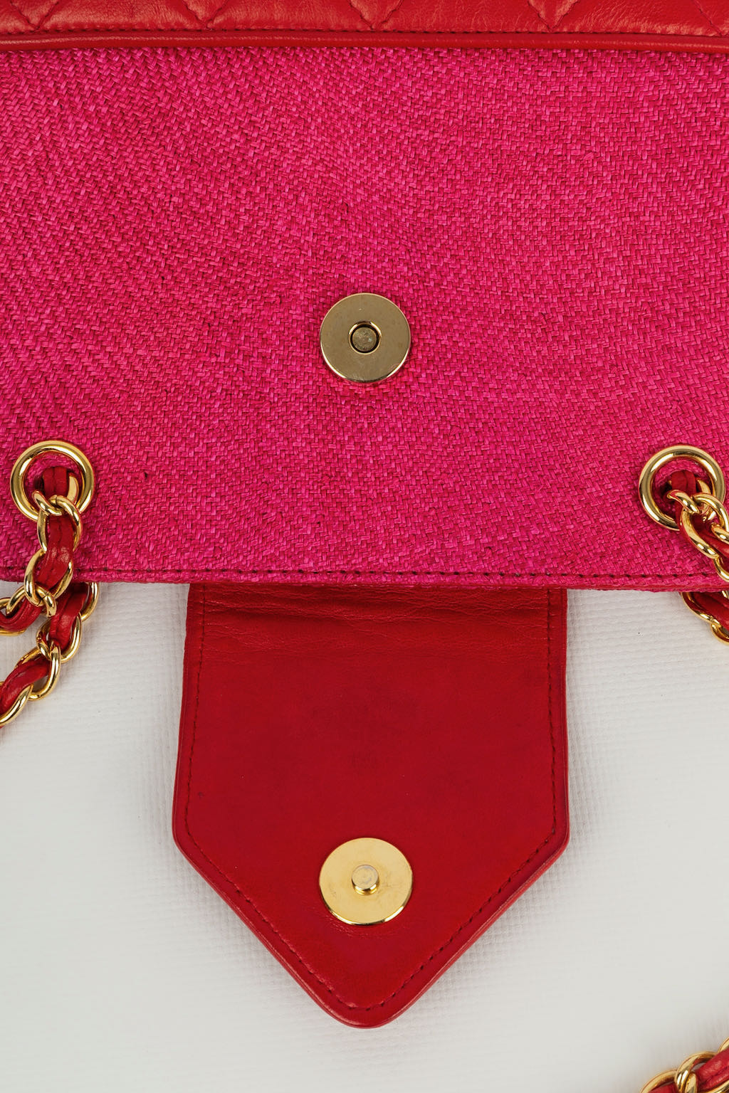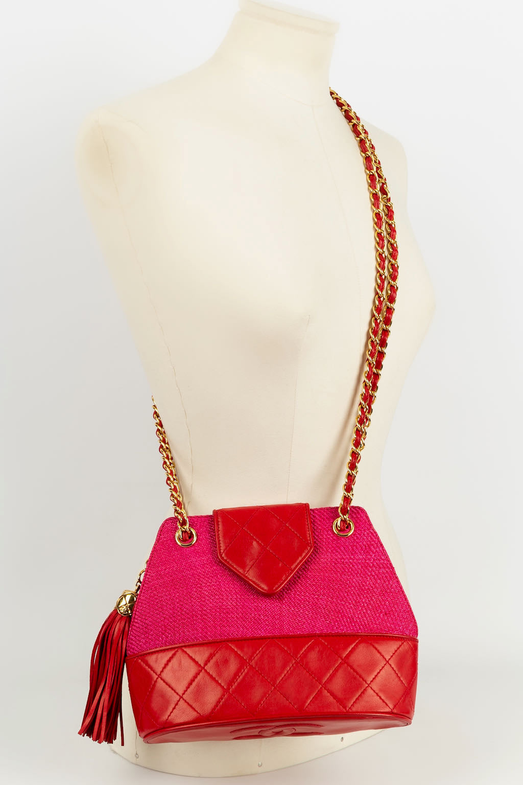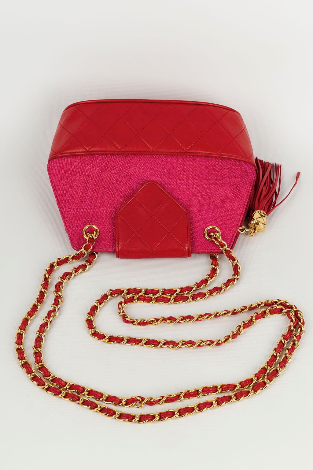CHANEL -(Made in Italy) Sac en cuir matelass� et paille de panama. Int�rieur en cuir rouge. Collection 1989/1991. Num�ro de s�rie pr�sent. A signaler, odeur pr�sente � l'int�rieur du sac.