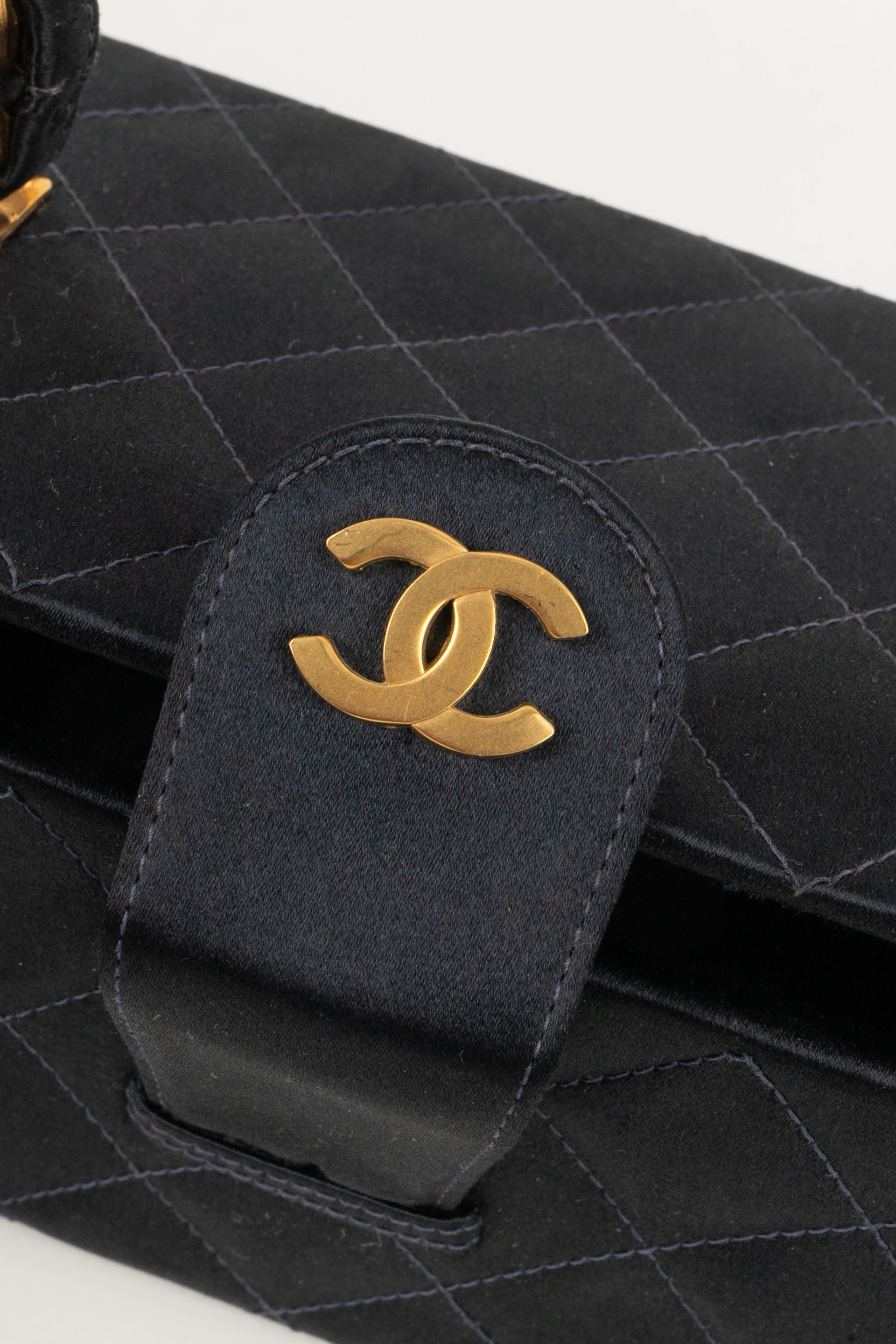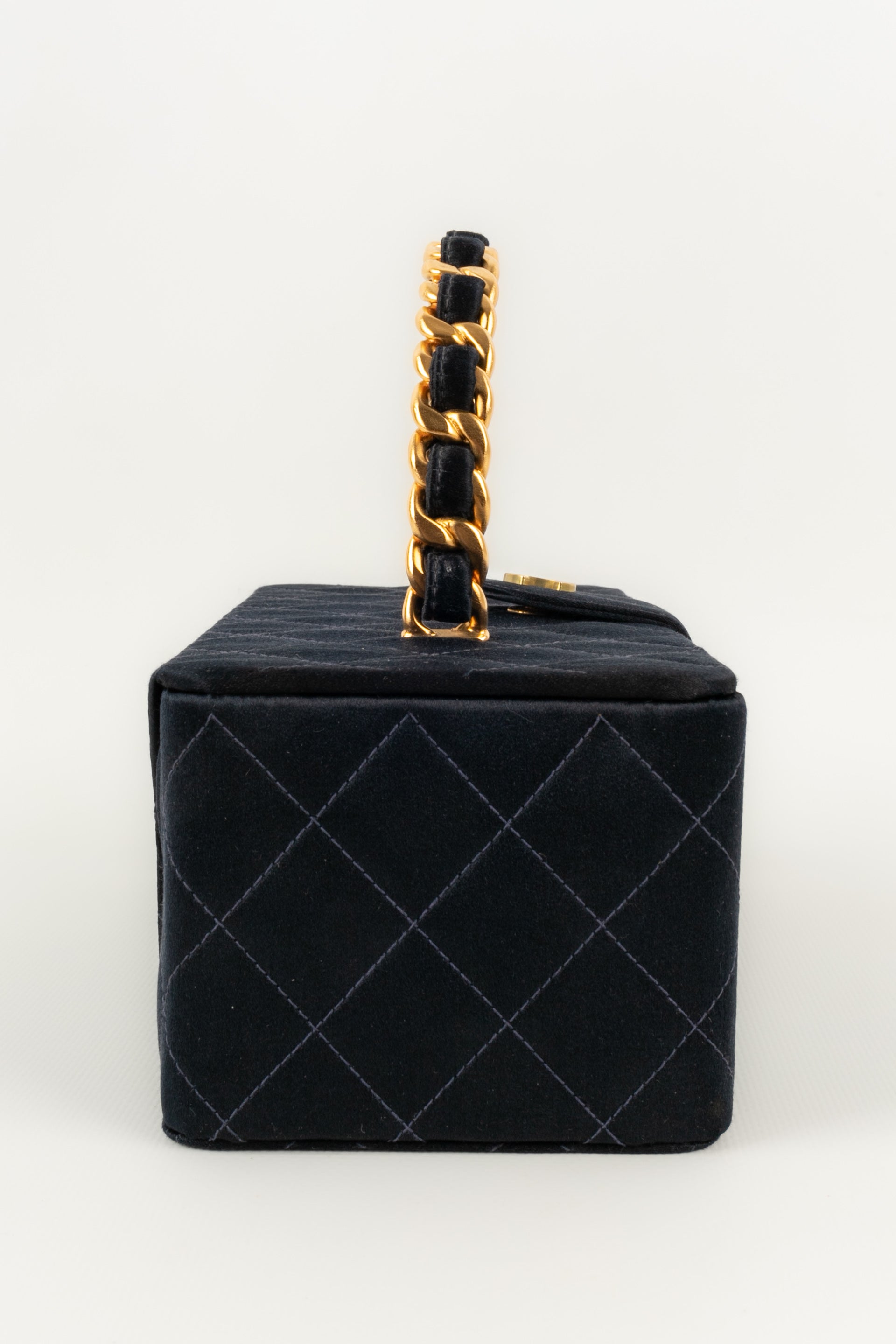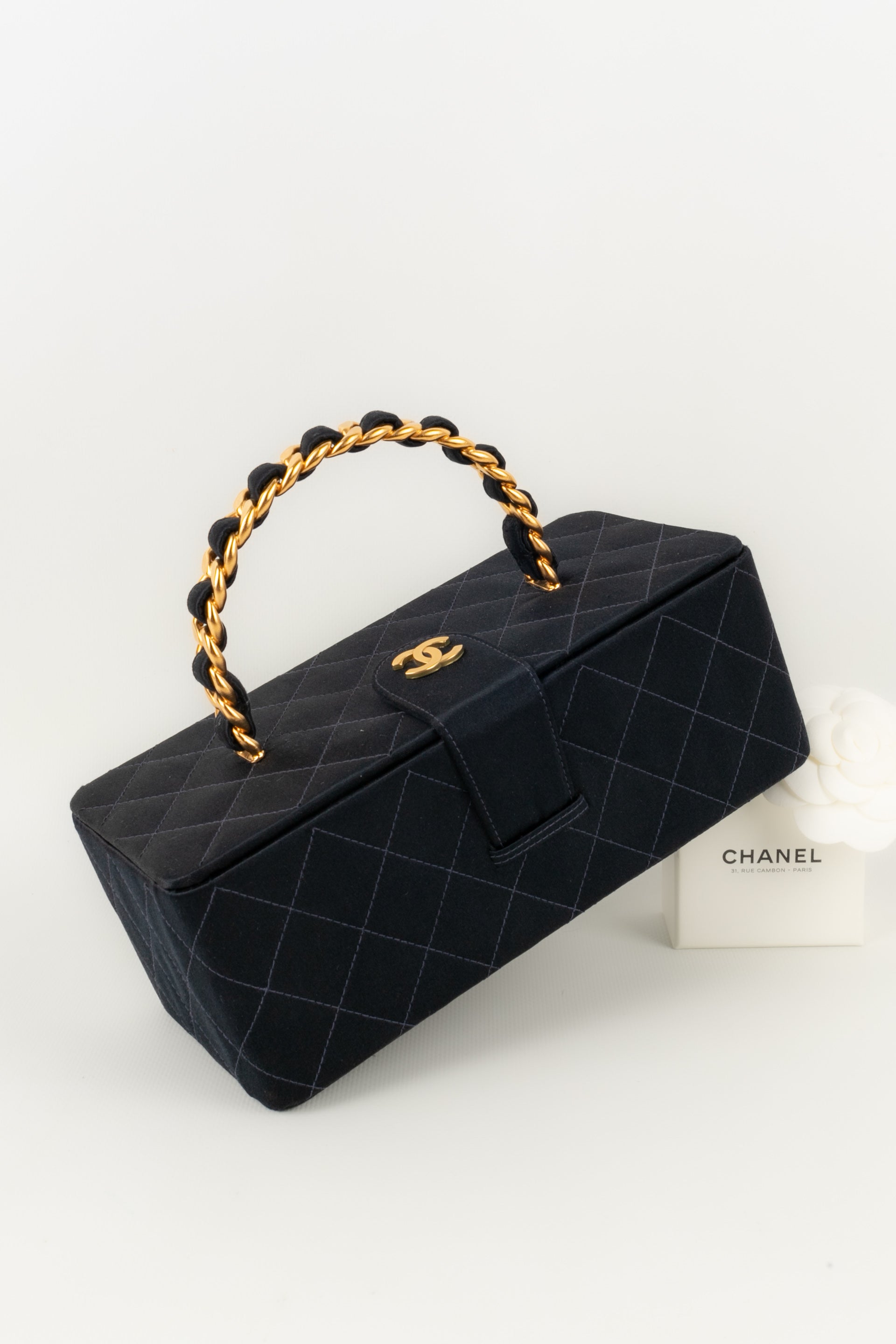 CHANEL - (Made in France) Sac en satin de soie matelassé, attributs en métal doré. Numéro de série présent. Collection 1994/1996.